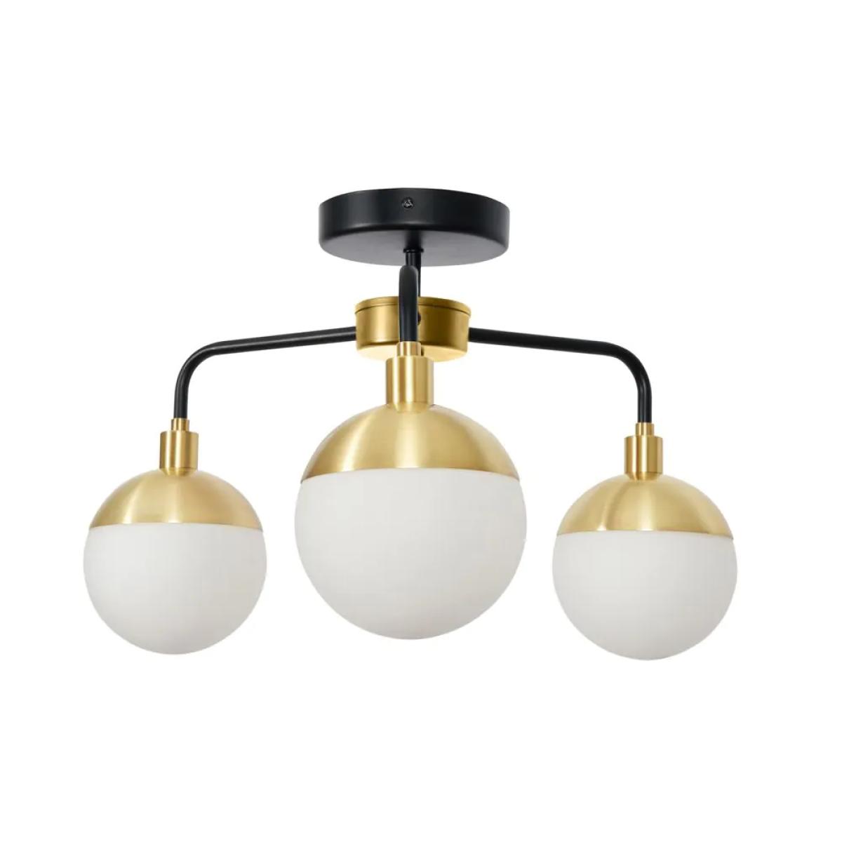 Sadie Bathroom Semi Flush Ceiling Light, Black and Brass