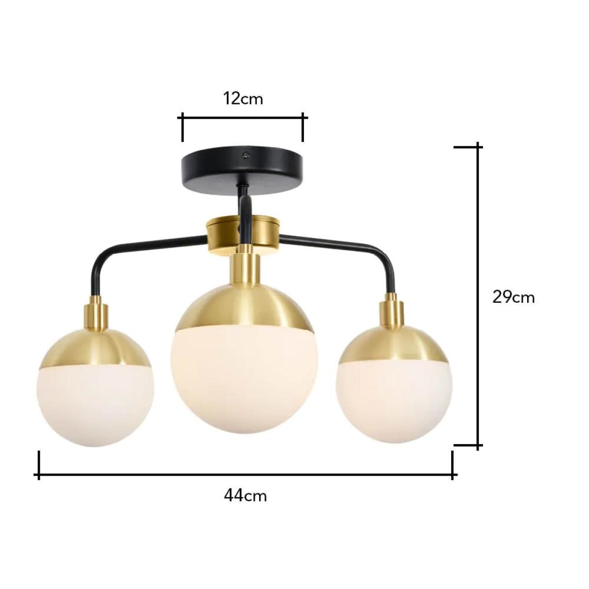 Make a statement with the Sadie Bathroom Semi Flush Ceiling Light, combining sleek design with powerful illumination. The Black and Brass finish adds a touch of glamour to your bathroom, while the three opal glass lights ensure even and ample brightness. Upgrade your bathroom space with this elegant and functional ceiling light, featuring an IP44 rating for water resistance.