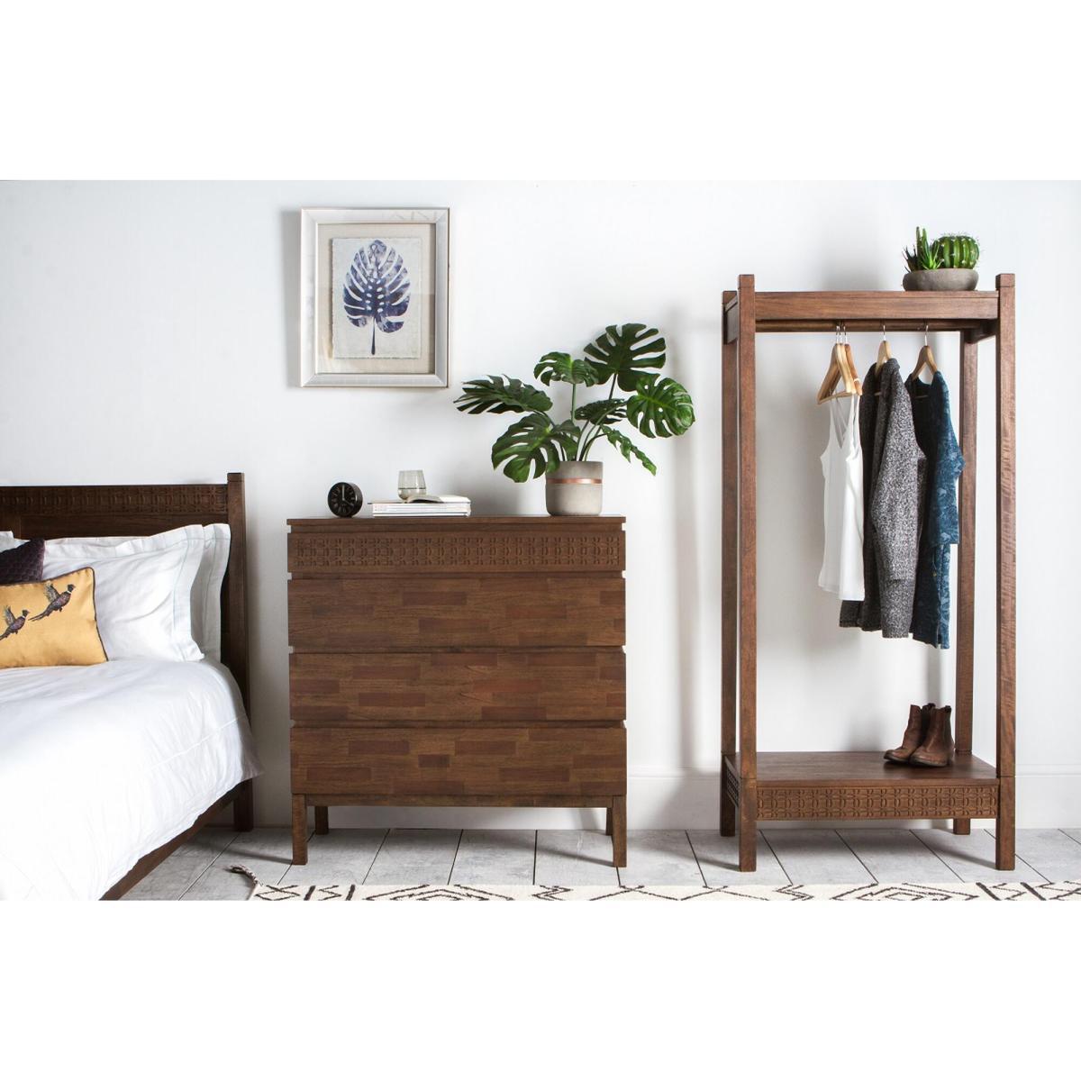 If being more organised was one of your resolutions for the New Year, then look no further than the Sadie clothes rack, a modern take on storage. Robust but light and airy, the Sadie stands tall and proud while showcasing the natural beauty of the wood blend it's crafted from - think Teak, Mahogany, Mindy and Mango wood. A natural finish throughout gives an earthy feel to this design, enhanced by a patterned frieze at the bottom for added textural appeal. Made for the contemporary home, the Sadie packs a style punch and is perfect to keep your space uncluttered while adding a bohemian feel to bedrooms and hallways.