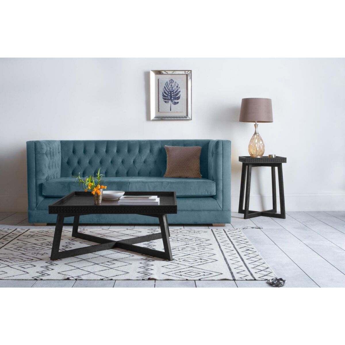 I’m a big fan of the Sadie table in charcoal for its low-slung, architectural frame and subtle texturing around the tray-top edge. Its dark matte finish sits well in modern, industrial or Scandi-inspired living rooms, pairing neatly with lighter textiles or a monochrome palette. To style, I’d layer a couple of hardcover books under a small ceramic vase or sculptural object, then add a shallow tray with a candle and a low-maintenance plant to keep the look grounded and practical.