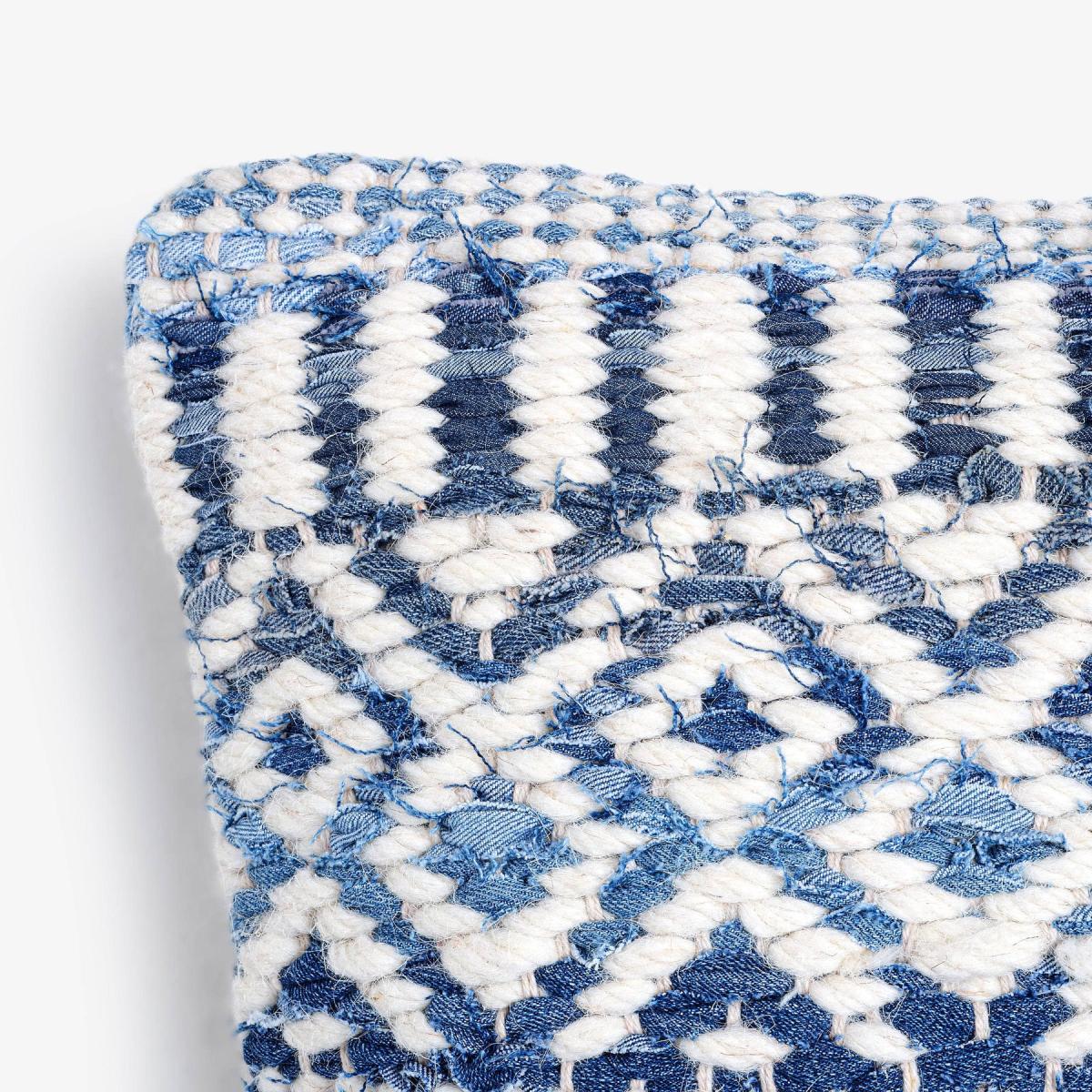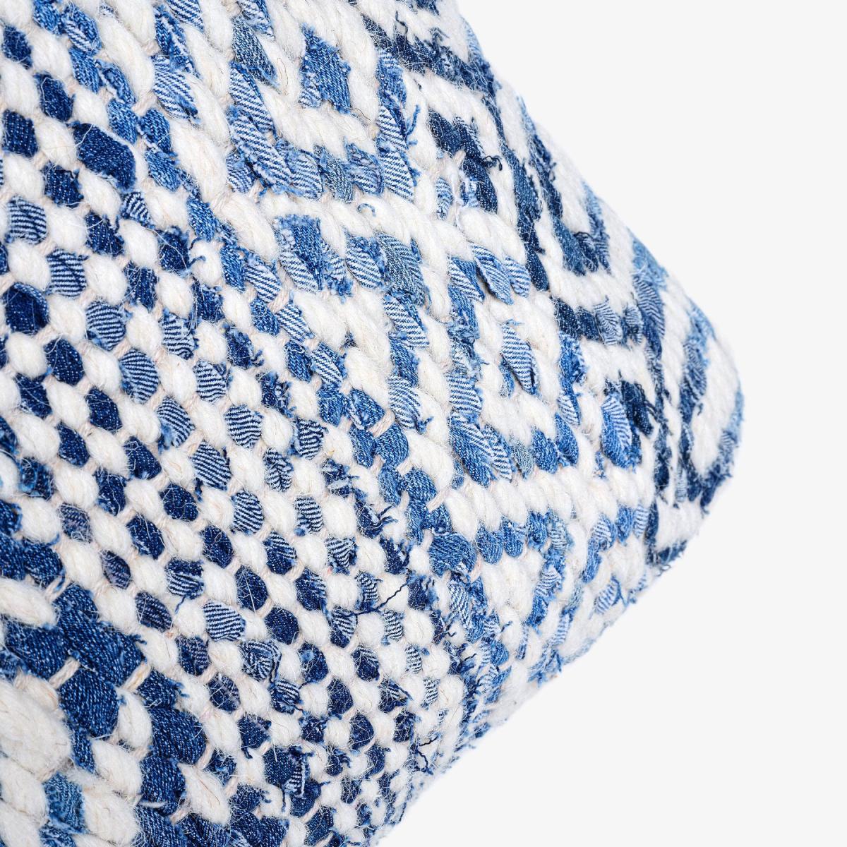 Our Sadie cushion in demim and ivory will add an element of luxury into your space with its aesthetically pleasing decorative handwoven design bursting with sophistication, personality, and character. Championing bohemian style, the simple two-tone intricate detailing will easily elevate all decors styles and is the perfect finishing touch to brighten up the space. Made from jute and denim to add extra softness and durability to your sofa, chair or bed. Celebrates artisanal skill and craftsmanship which helps to preserve craft traditions.