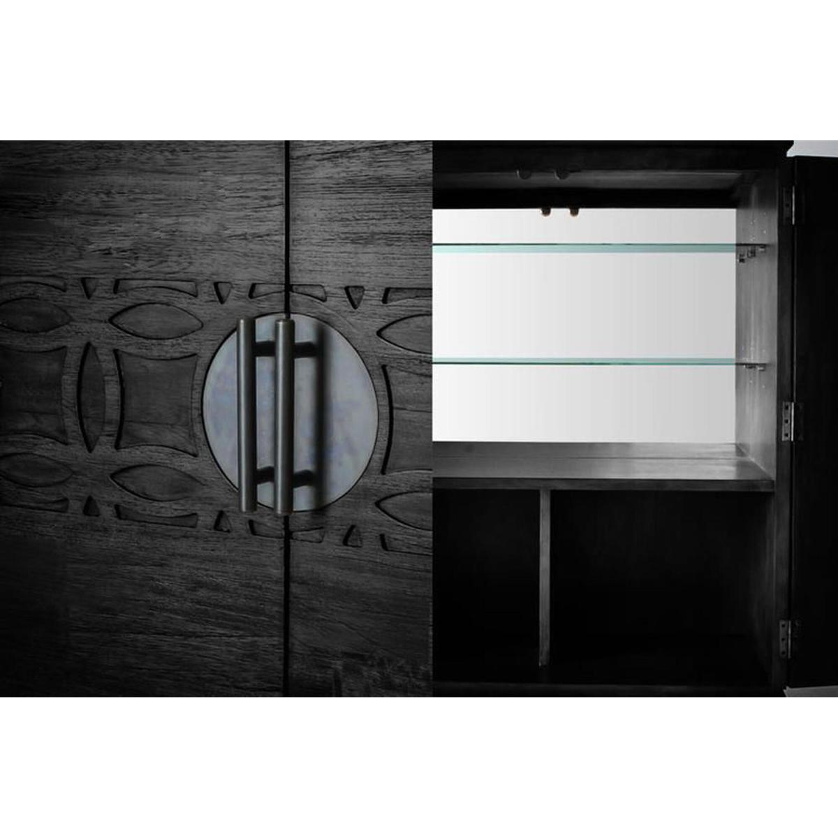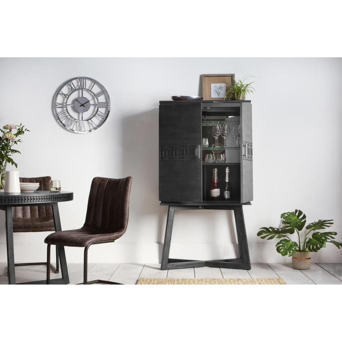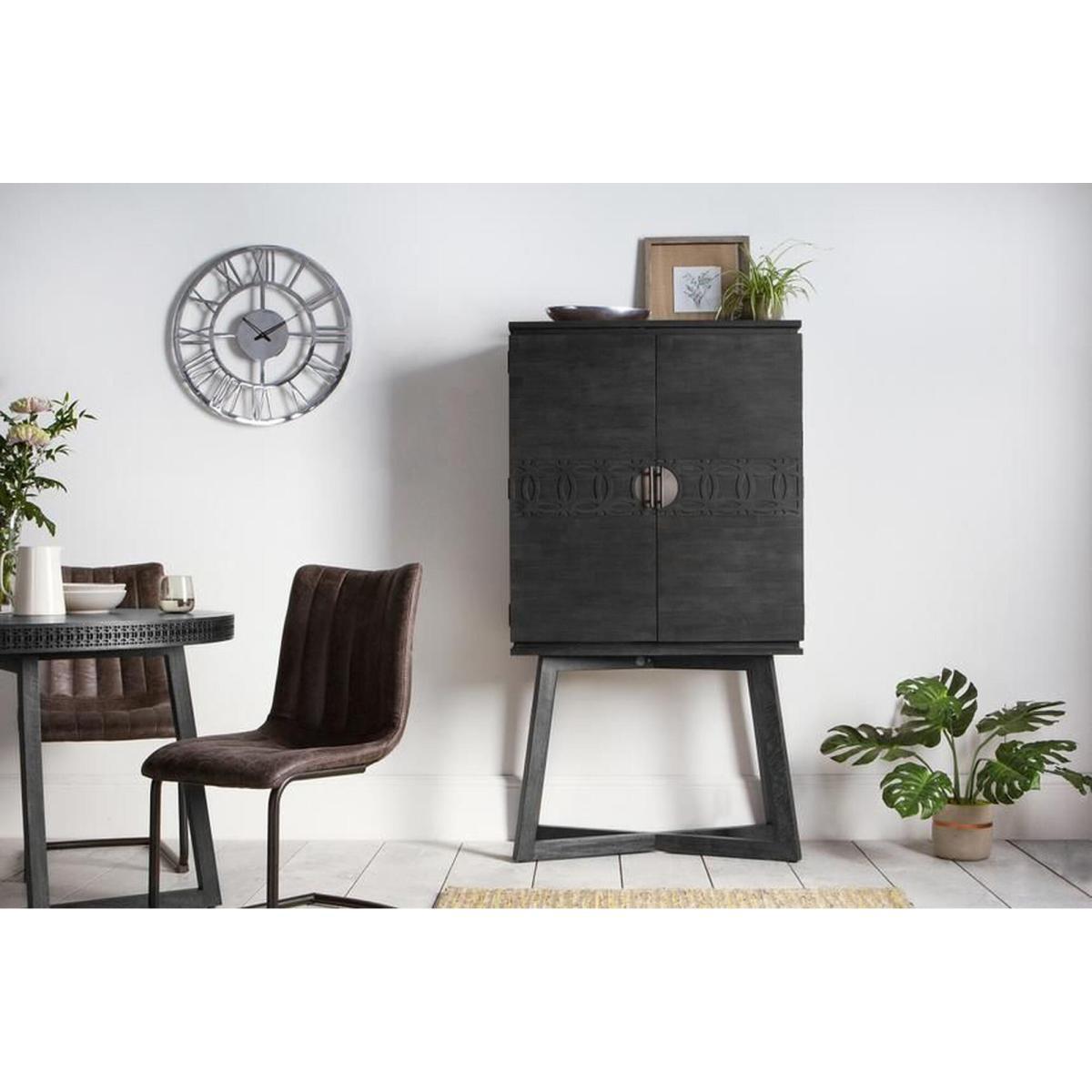 Create the perfect setting for your parties with the charming Sadie drinks cabinet. But forget the shiny, metal-clad finishes that you would expect from these iconic home staples, the Sadie is an ode to wood and its natural beauty. Held by a slender criss-cross base, the body of the Sadie reflects the innate variations and textures of the wood it's made of, which are given a polished look with a rich Charcoal finish. Metal handles and a patterned frieze decorate the cabinet doors, leading to a generous mirrored space with glass shelves and compartments to store your drinks, accessories and glassware. We believe the Sadie has the potential to become a family heirloom and can almost see it taking over contemporary living room and reunions to celebrate in style.