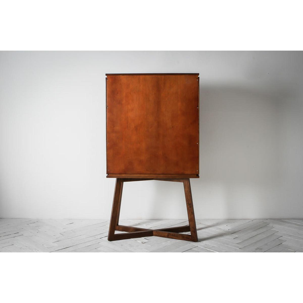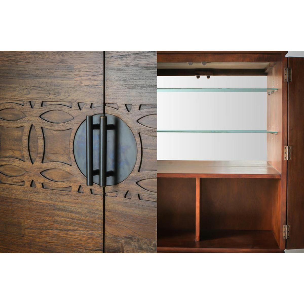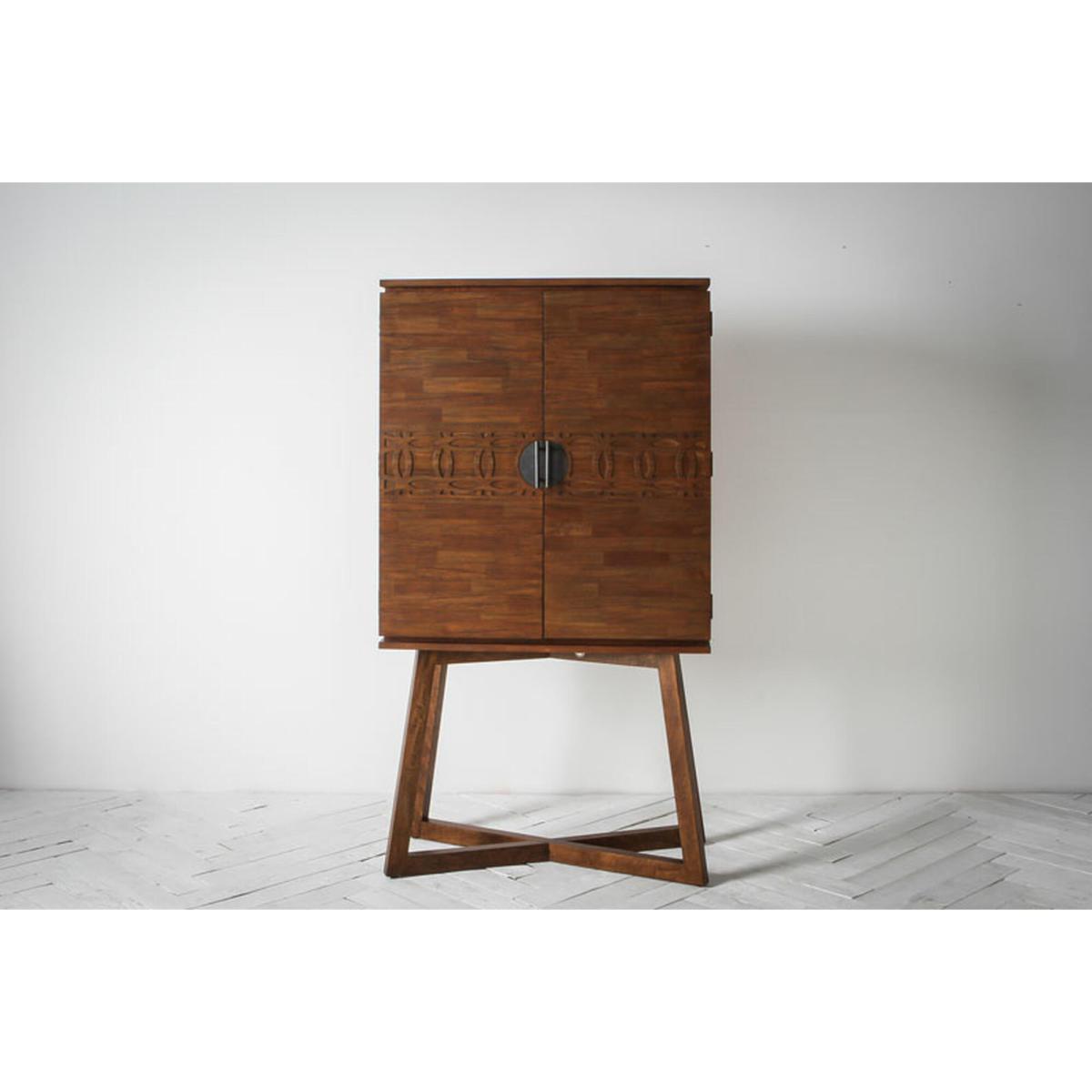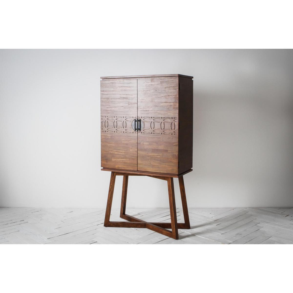 Create the perfect setting for your parties with the charming Sadie drinks cabinet. But forget the shiny, metal-clad finishes that you would expect from these iconic home staples, the Sadie is an ode to wood and its natural beauty. Held by a slender criss-cross base, the body of the Sadie reflects the innate variations and textures of the wood it's made of, which are highlighted with a subtle natural finish. Metal handles and a patterned frieze decorate the cabinet doors, leading to a generous mirrored space with glass shelves and compartments to store your drinks, accessories and glassware. We believe the Sadie has the potential to become a family heirloom and can almost see it taking over contemporary living room and reunions to celebrate in style.