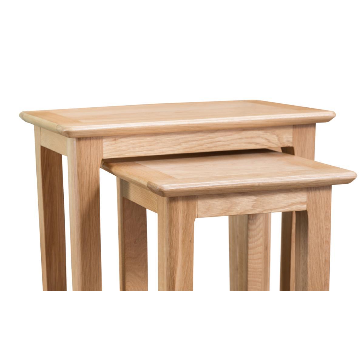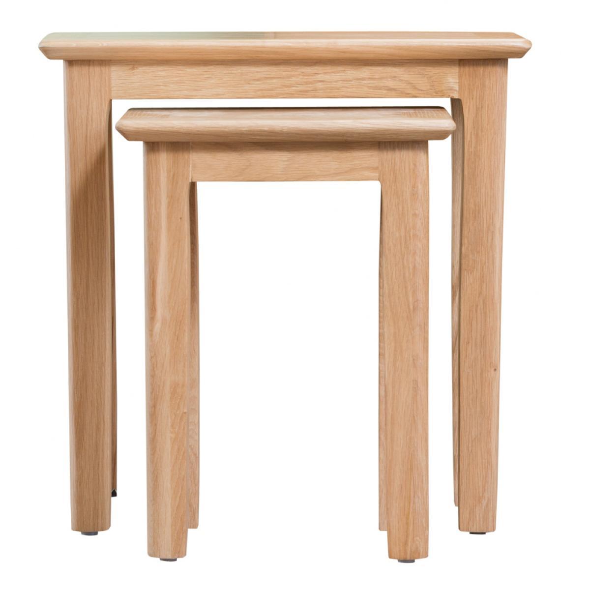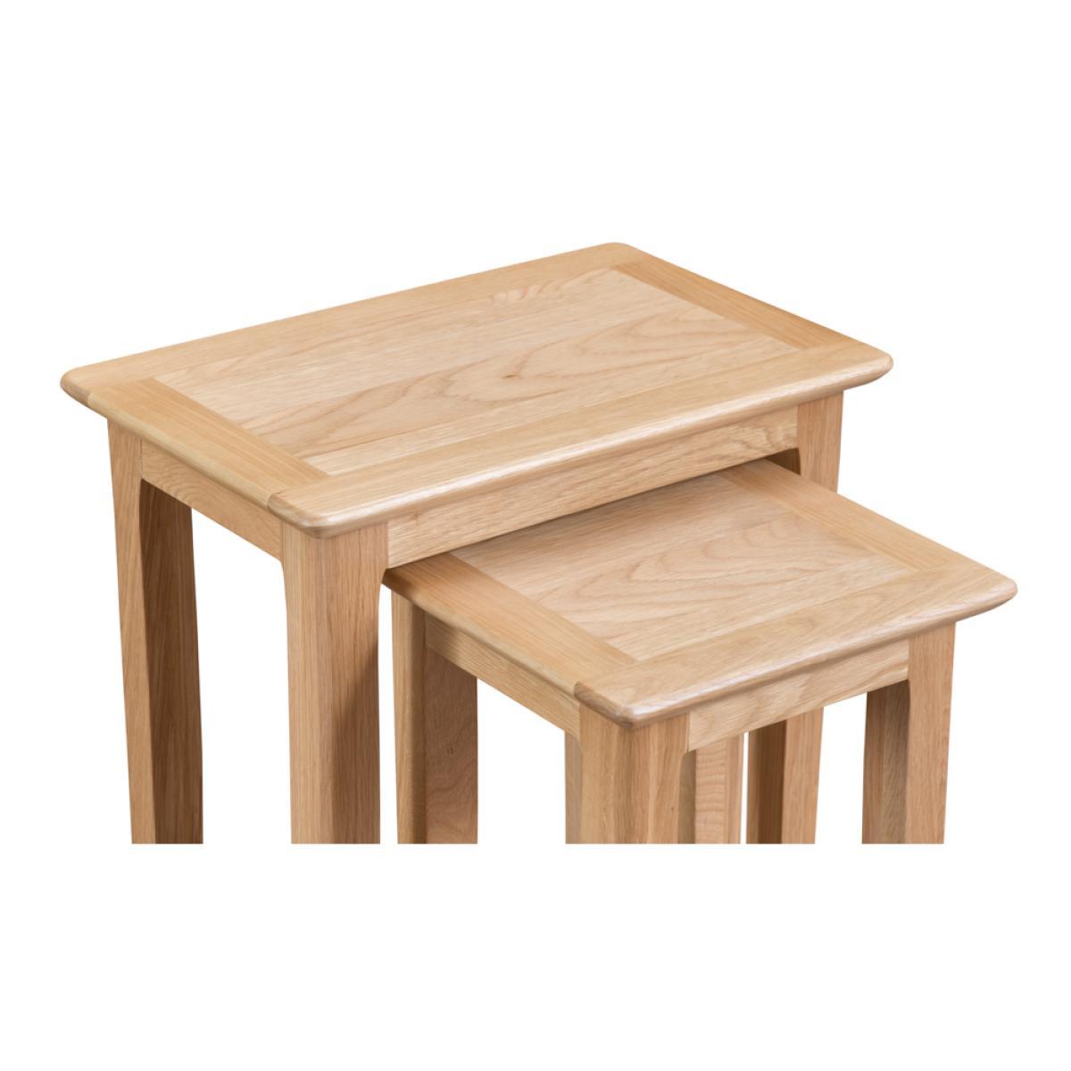 Simple and charming in design, the Sadie Nest of 2 Tables features versatile shapes that effortlessly stack together for easy storage, and strong, lean oak legs. The perfect pair for effortless styling and function in any home. Natural oak finish for charming style that lasts. Designed to easily stack on top of one another for simple, space-saving storage. Minimal and versatile for styling in all types of home2 sizes of table means there’s a height and size for all needs. Matches the entire Sadie range