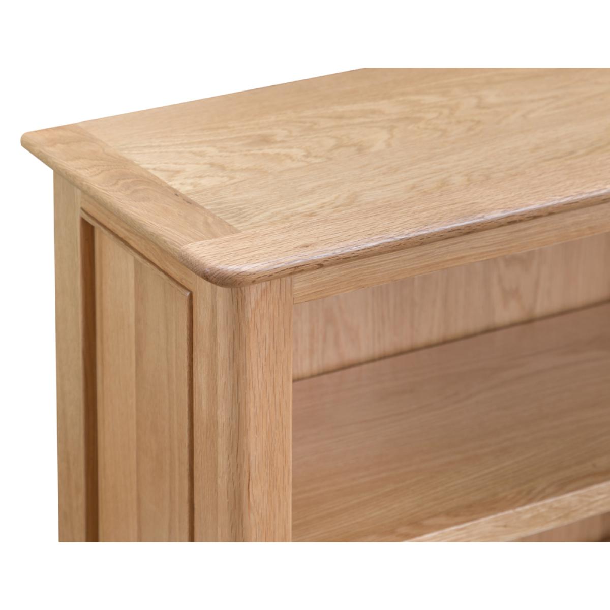 Compact and functional, the lovely natural Oak Sadie Wide Bookcase boasts a low, wide design with 2 long shelf rows perfect for storing and displaying. Perfectly matching the full Sadie range to ensure your home has everything it needs, with short oak legs and a smooth, wide top. Crafted in quality, solid natural oak and veneer for sturdy, lasting storage. Matches the entire Sadie collection. Features 2 middle shelves, making for 3 rows of storage and additional display. Wide and low, for maximum storage space without covering your walls. Supported by short solid oak legs for the ultimate support
