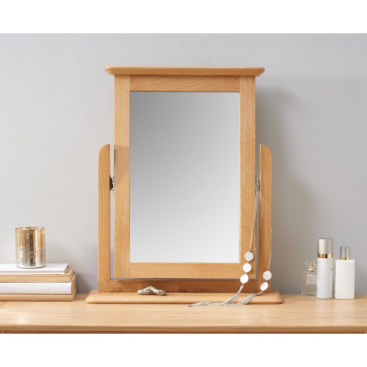 The Sadie Oak Trinket Mirror features a classic design to effortlessly complement your bedroom setting. The free-standing dressing table mirror features a light oak finish for a minimalist look and is conveniently adjustable to your preferred angle. Stylish oak dressing table mirror. The perfect finishing touch for your bedroom suite. Light oak finish for a minimalist look. Conveniently free standing Adjusts to your preferred angle. Complements other items in the oak bedroom furniture range