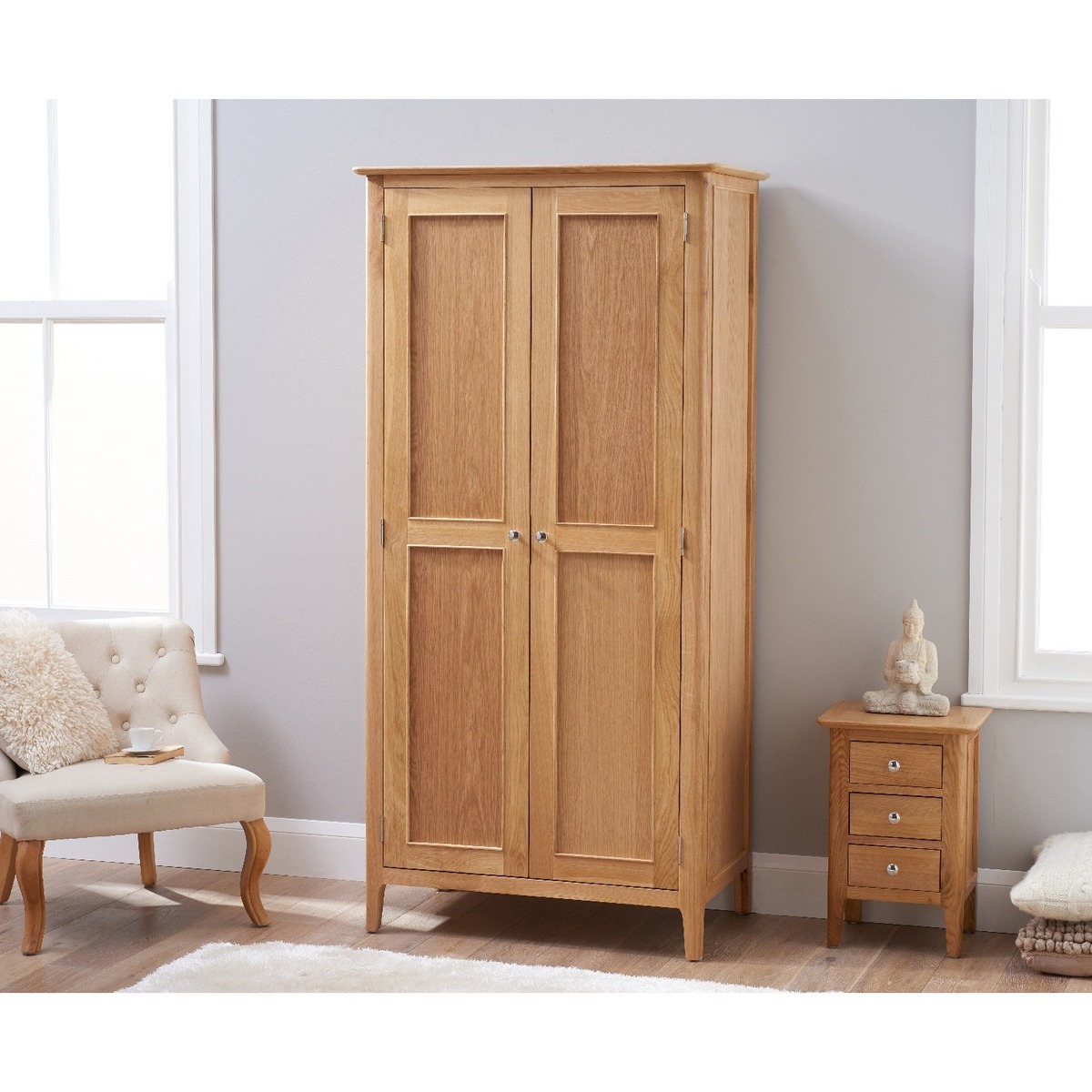 Stylish and minimalist, the Sadie Oak Two Door Wardrobe makes an impression in any bedroom setting. Carefully crafted, the two door wardrobe features a natural light oak finish and is complete with a hardwood hanging rail and both oak and chrome knobs. Stylish two door all-hanging wardrobe. Natural light oak finish for a beautiful minimalist look. Hardwood hanging rail for optimum support. Internal shelf for additional storage. Comes with both oak and chrome knobs so you can choose the perfect look. Complements other items in the oak bedroom furniture collection
