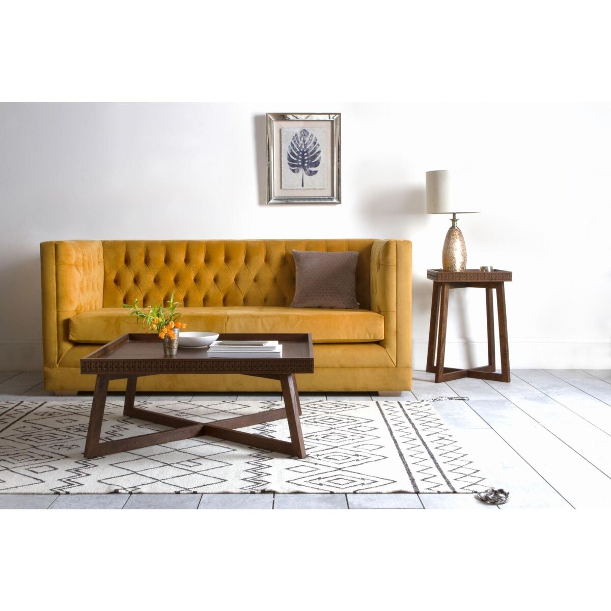 More often than not side tables become the key piece that helps to pull together the style of a room and that is certainly the case of our Sadie. Its slender, tall criss-cross base is an absolute charmer that robustly holds the star of the show - a square table top with a delightfully patterned frieze on its outer edge. Playing with simplicity and detail, t he Sadie Range becomes a showcase of the natural beauty of wood and expert craftsmanship, displaying proudly its innate variations and silky texture. A subtle natural finish adds the final touch, giving this side table a sophisticated and polished look that will beautifully match contemporary living rooms and pack them with a charming bohemian feel.