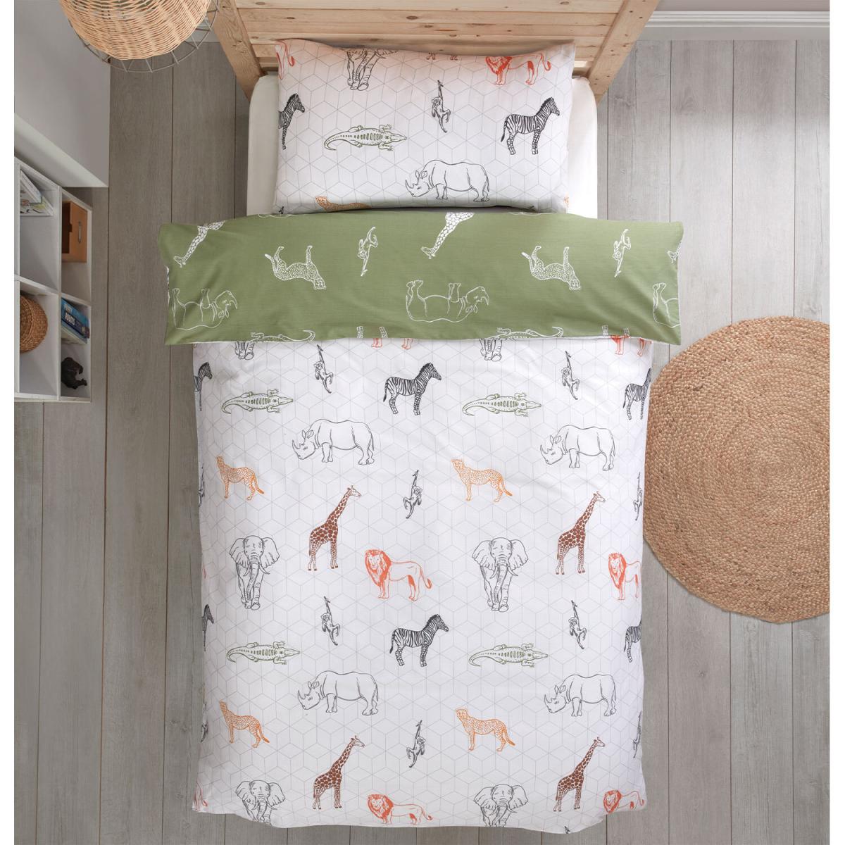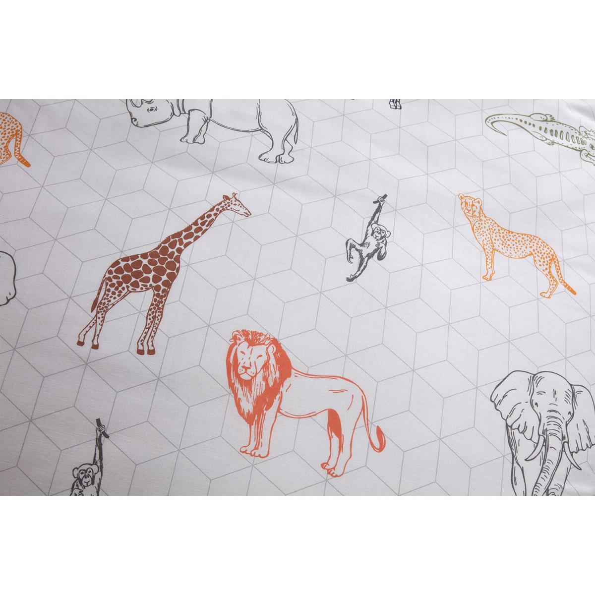 This Safari Animals Duvet and Pillowcase Set will be perfect for the bedroom of an older kid, or perhaps even a teenager. With its modern geometric pattern and illustrations of safari wildlife in muted colours, it will show off their passion for animals while also bringing that mature vibe that older children often strive for. Made from a polycotton blend, this bedding set will prove to be both durable and soft. This duvet set comes with one matching pillowcase.