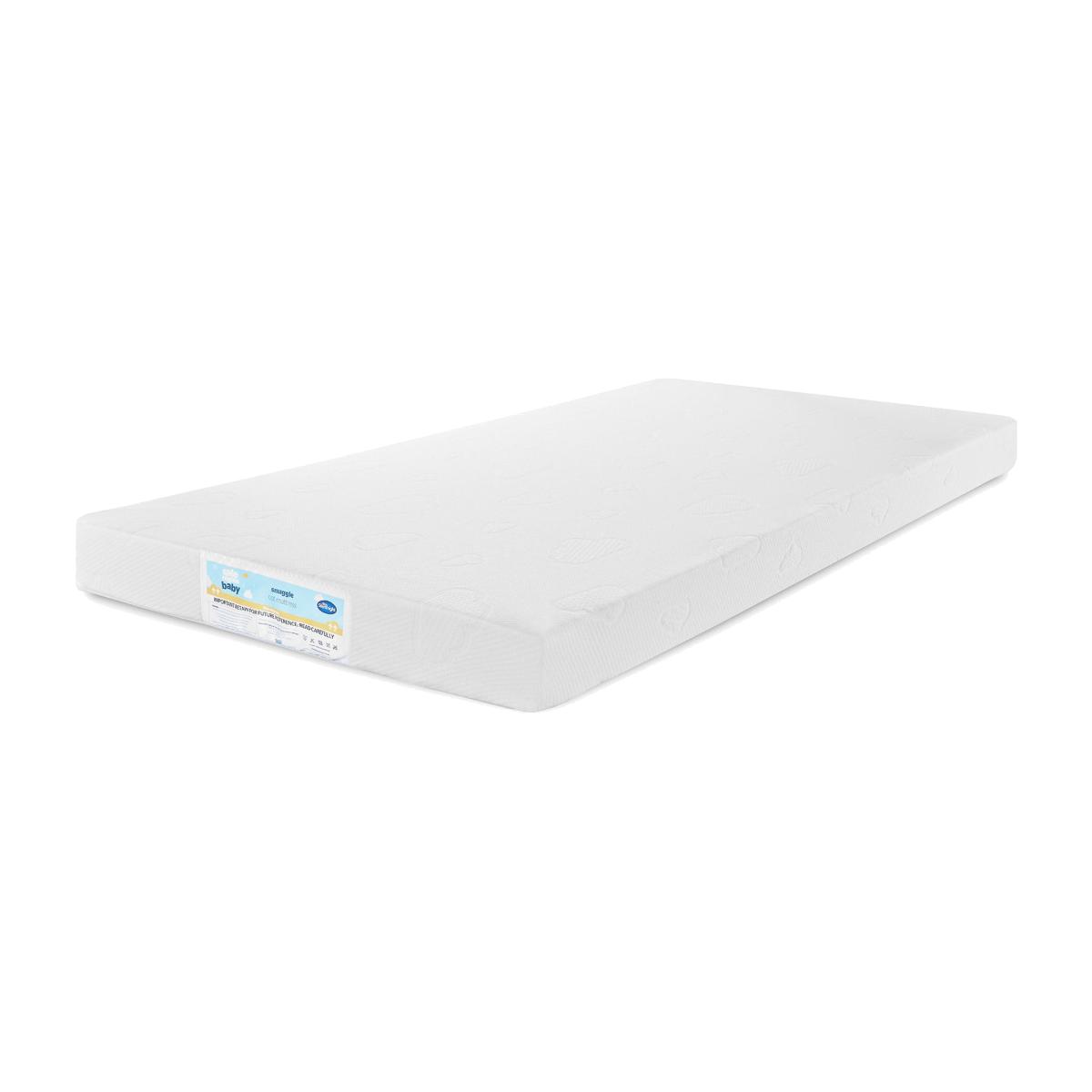 Give your little one the gift of safe and comfortable sleep with Silentnight's Snuggle Cot Mattress. Our foam and chemical treatment-free mattress is designed to provide a pure sleeping experience for your baby. The extra-comfortable, breathable polyester core, coupled with the hypoallergenic sleep surface, creates the perfect sleeping environment for your baby. The beautiful cloud pattern fabric design adds a touch of whimsy to your nursery décor. Plus, our mattress is tried and tested to the highest standards in our SATRA-approved testing lab, ensuring the safest possible sleeping environment for your baby. Our machine washable cover and handmade construction in the UK with a 5-year guarantee provide peace of mind and longevity. Trust the UK's most trusted sleep brand, Silentnight, with over 75 years of sleep expertise to keep your baby sleeping soundly.