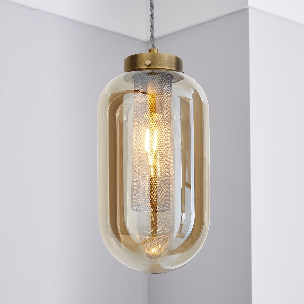 Safi Mesh 1 Light Pendant Ceiling Fitting Antique Brass Antique Brass