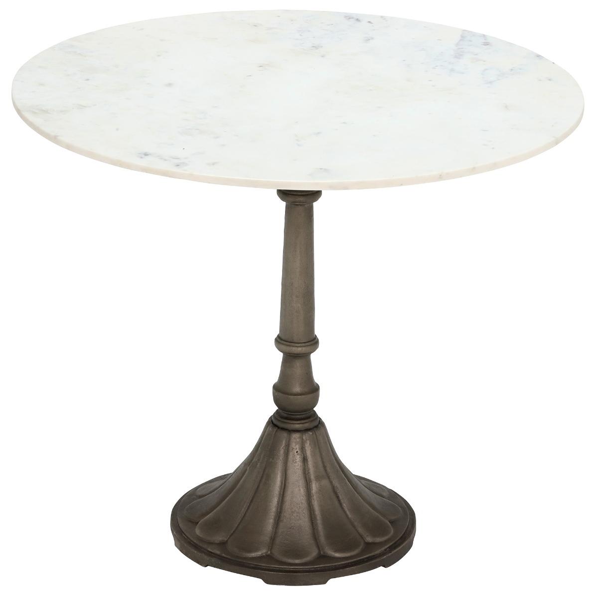 Design. A lovely addition to any dining room. The Safi Round Dining Table has a beautiful round marble top and a cat iron base, creating a unique look that nods to traditional and modern design and helping you to achieve a desirable aesthetic in your home. This bistro style table will be a unique feature that would best suit a modernised home. To balance the industrial look of the Safi Round Dining Table we recommend pairing with a velvet chair.