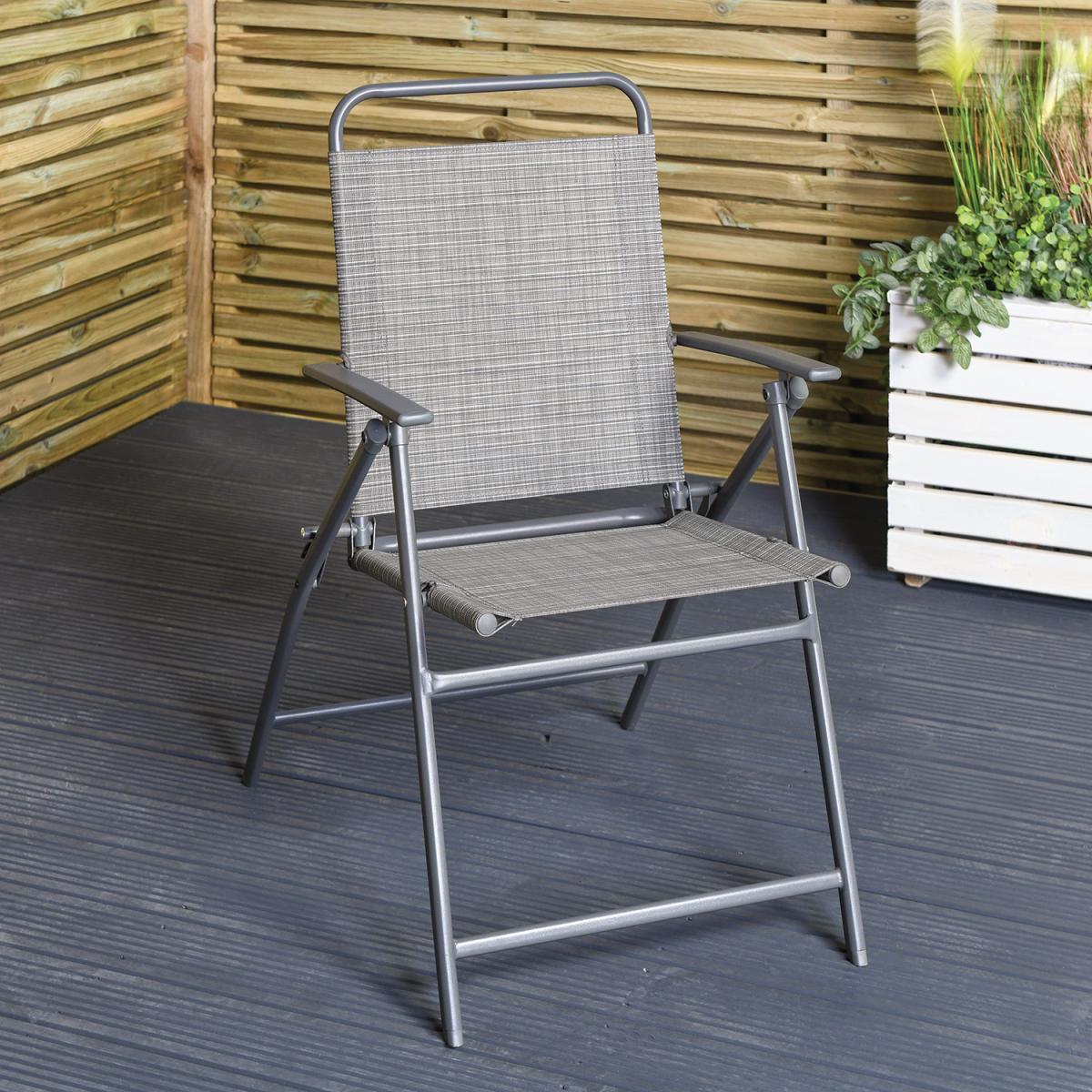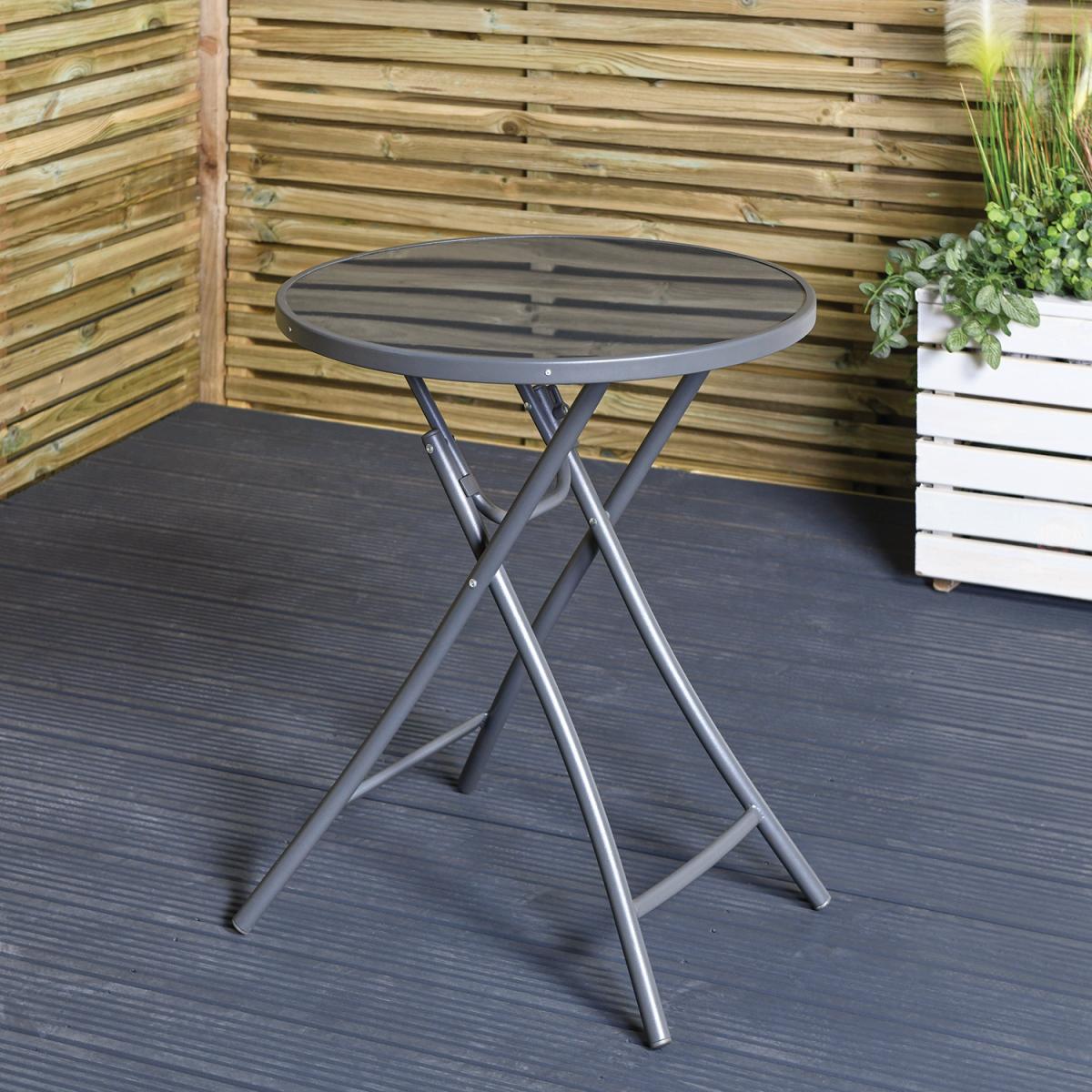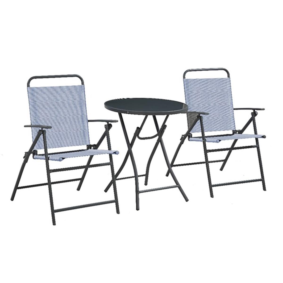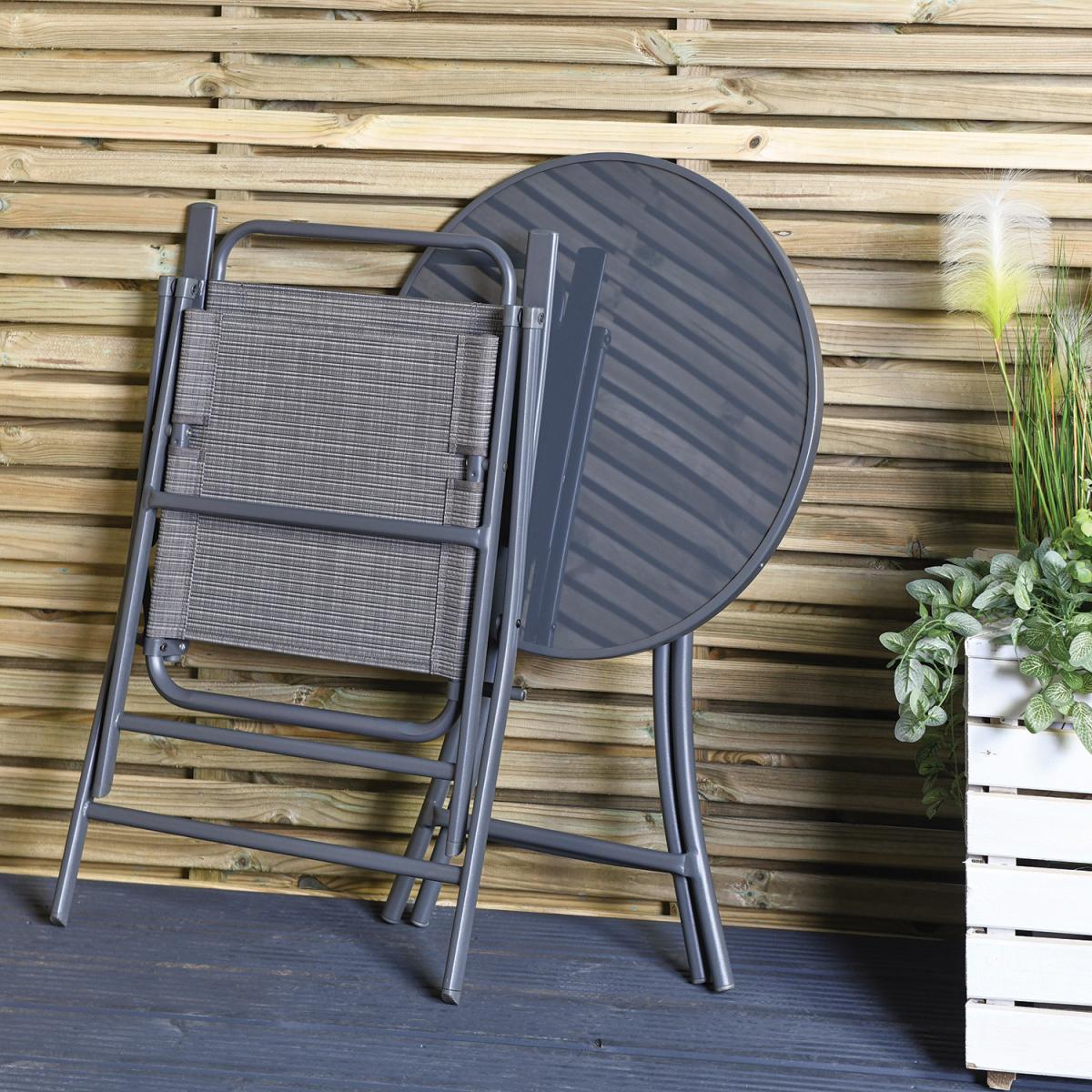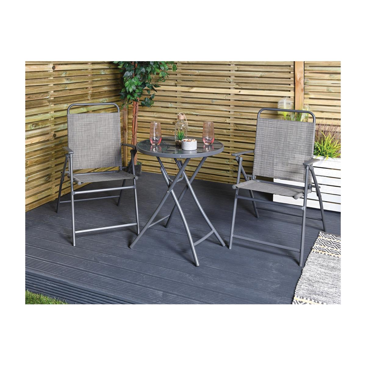The perfect garden furniture for outdoor spaces, this Safina Bistro Set is great for balconies or small patios. It is made from a durable, weatherproof Textilene fabric featuring a stylish striped design. Both the chair and table in this patio set have sturdy powder-coated steel frames for extra strength and weather resistance. Designed to easily fold away when not in use, the table has toughened glass to help survive the outside weather and add a touch of sleek sophistication.