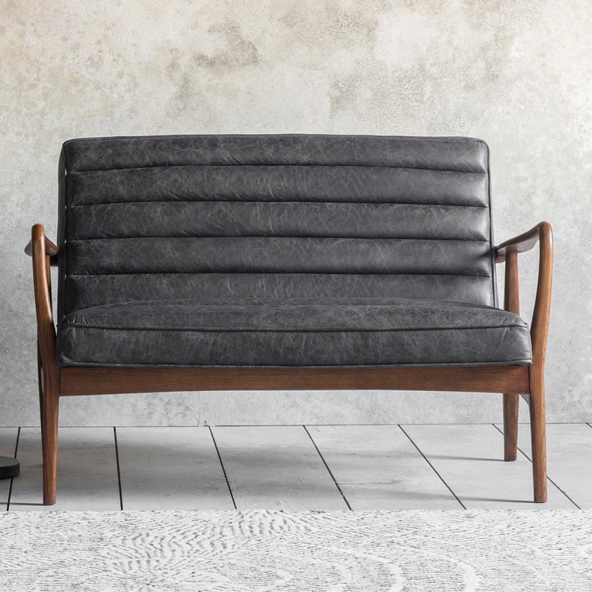 Safir 2 Seater Leather Sofa - Antique Ebony
