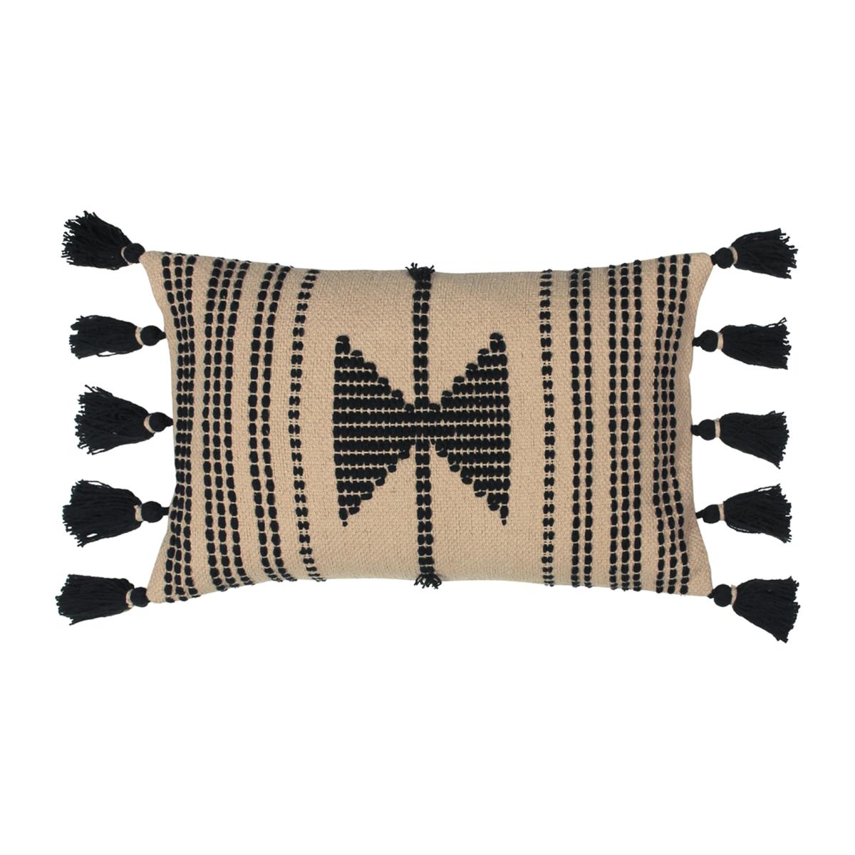 Make a statement in your home with the Sagar cushion. Featuring a bold stitched geometric design on a cotton canvas fabric. Complete with black side tassels, this cushion will sit perfectly in any contemporary interior.