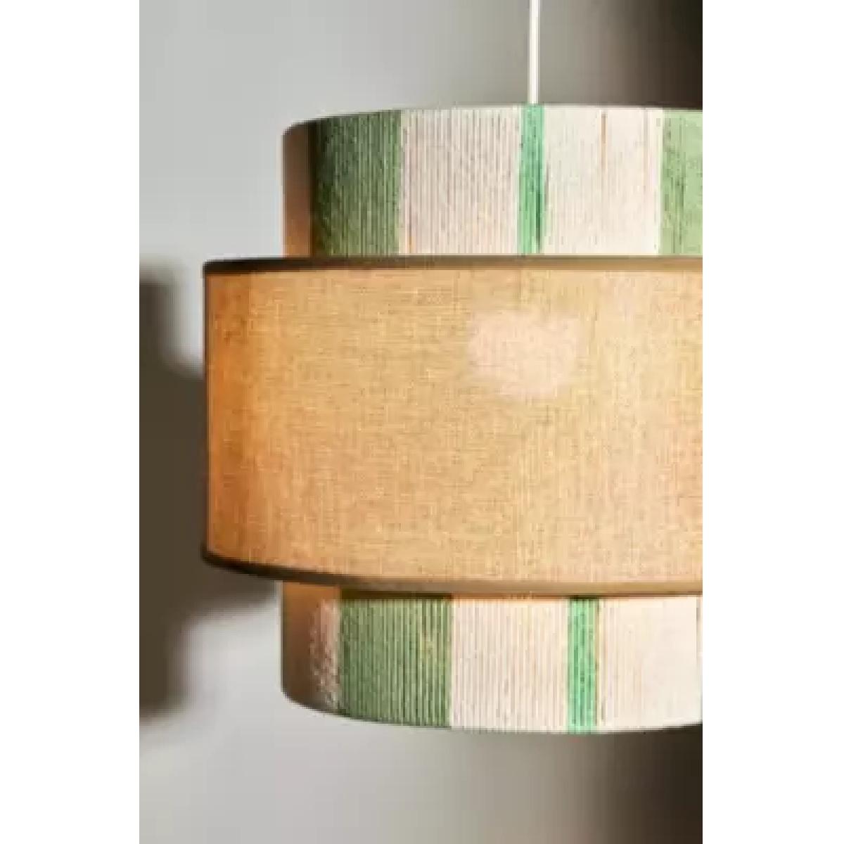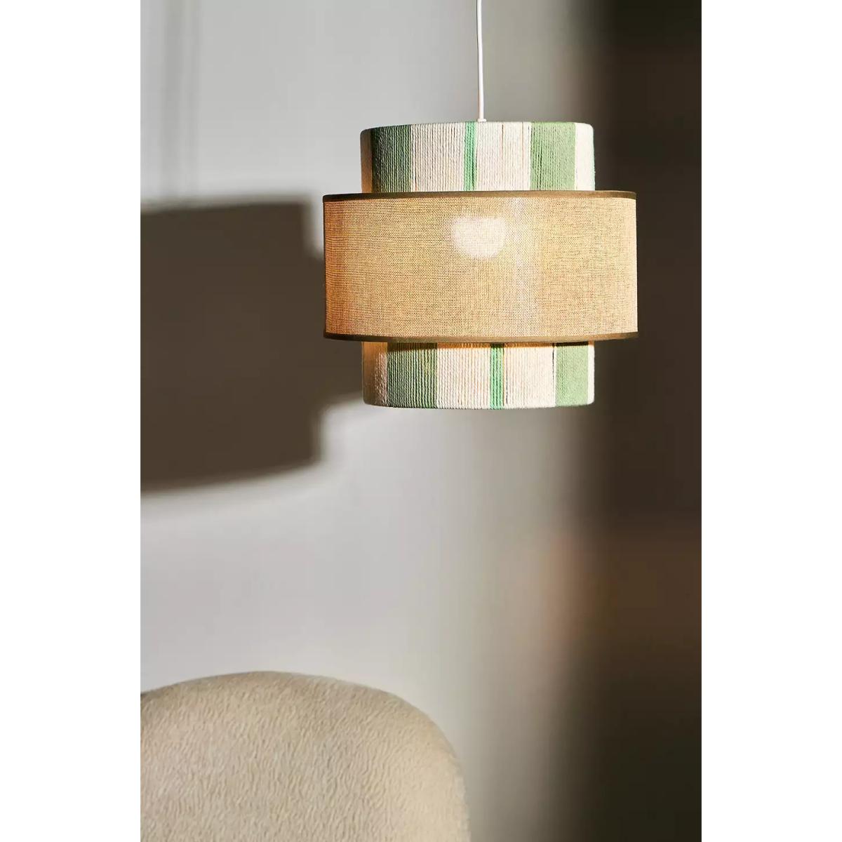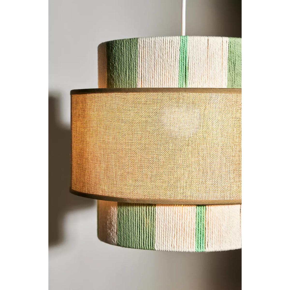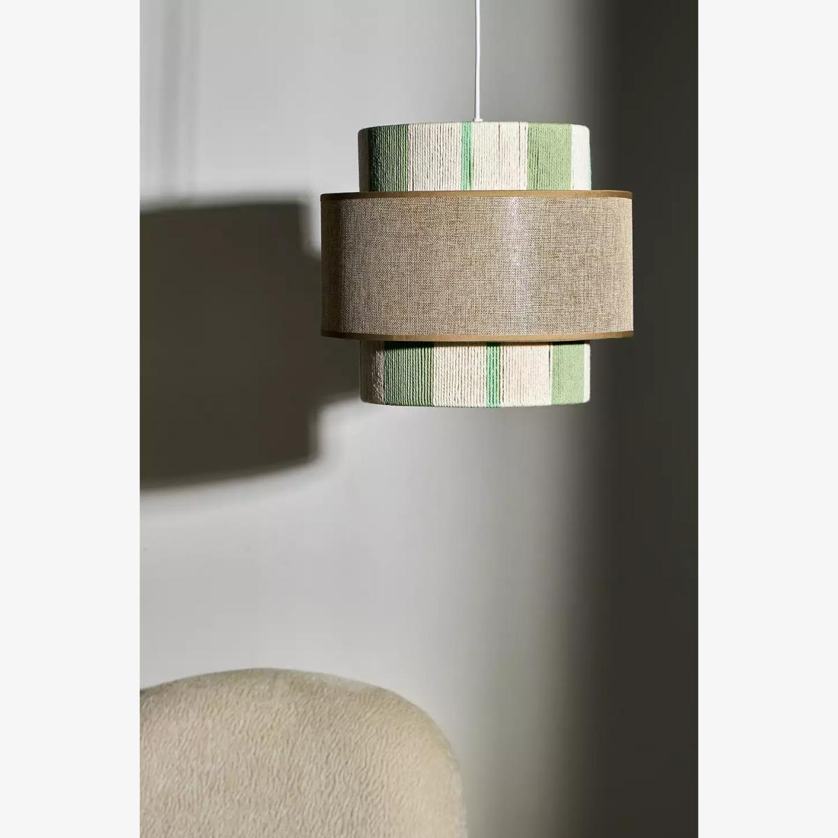 Barrel-shaped lamp shade with two circular silhouette panels. Features a striped and block-colour design with woven rope detailing throughout. Perfect for adding to any light fixture to add a tonal finish to your space. Bulb not included. **Content** \- Cotton, Linen- Spot clean **Size** \- W: 35cm x D: 35cm x H: 31cm- Package dimensions: W: 71.5cm x D: 36.5cm x H: 35cm