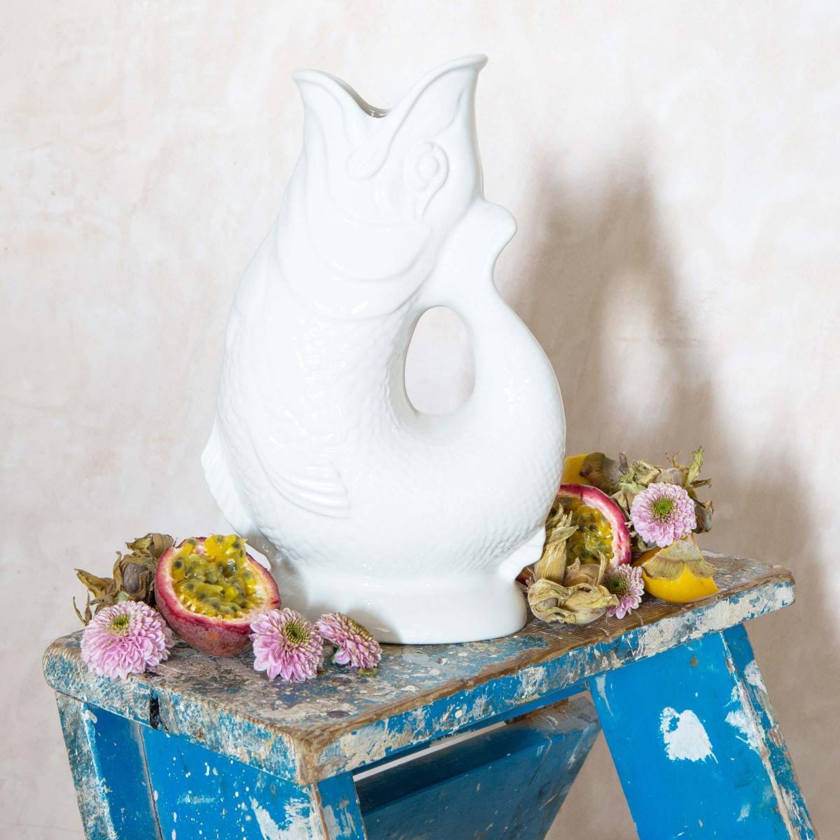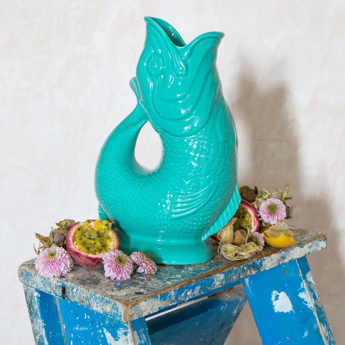 Renowned for their unique gurgling sound, our Gluggle Jugs possess an endearing quirkiness. Inspired by late 19th century Staffordshire pottery, our traditional fish-shaped pitchers are a guaranteed talking point, perfect for use as a water jug, flower vase or utensil pot.