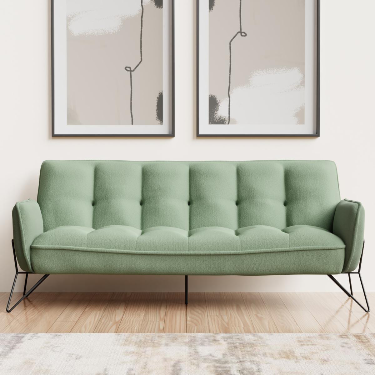 I love the sage green click clack sofa bed because it offers a fresh, versatile look that can brighten up both modern and classic interiors. Its soft green hue works particularly well in Scandinavian-inspired schemes or pastel-themed rooms, adding colour without overpowering the space. From a styling perspective, pairing this sofa with neutral accessories, like grey or beige cushions, keeps the look balanced, while a textured throw can add cosiness. Its compact design makes it ideal for small living rooms or guest bedrooms where flexibility is key. To enhance its practicality, consider placing it near a minimal side table and a stylish desk lamp, so it functions both as a sofa and a comfy bed for guests.