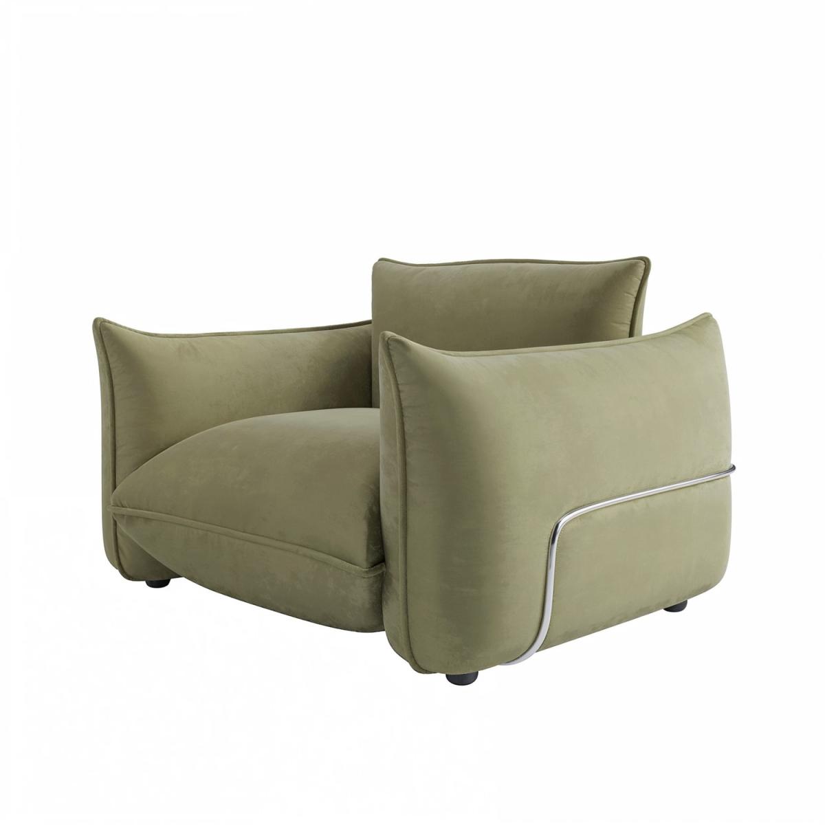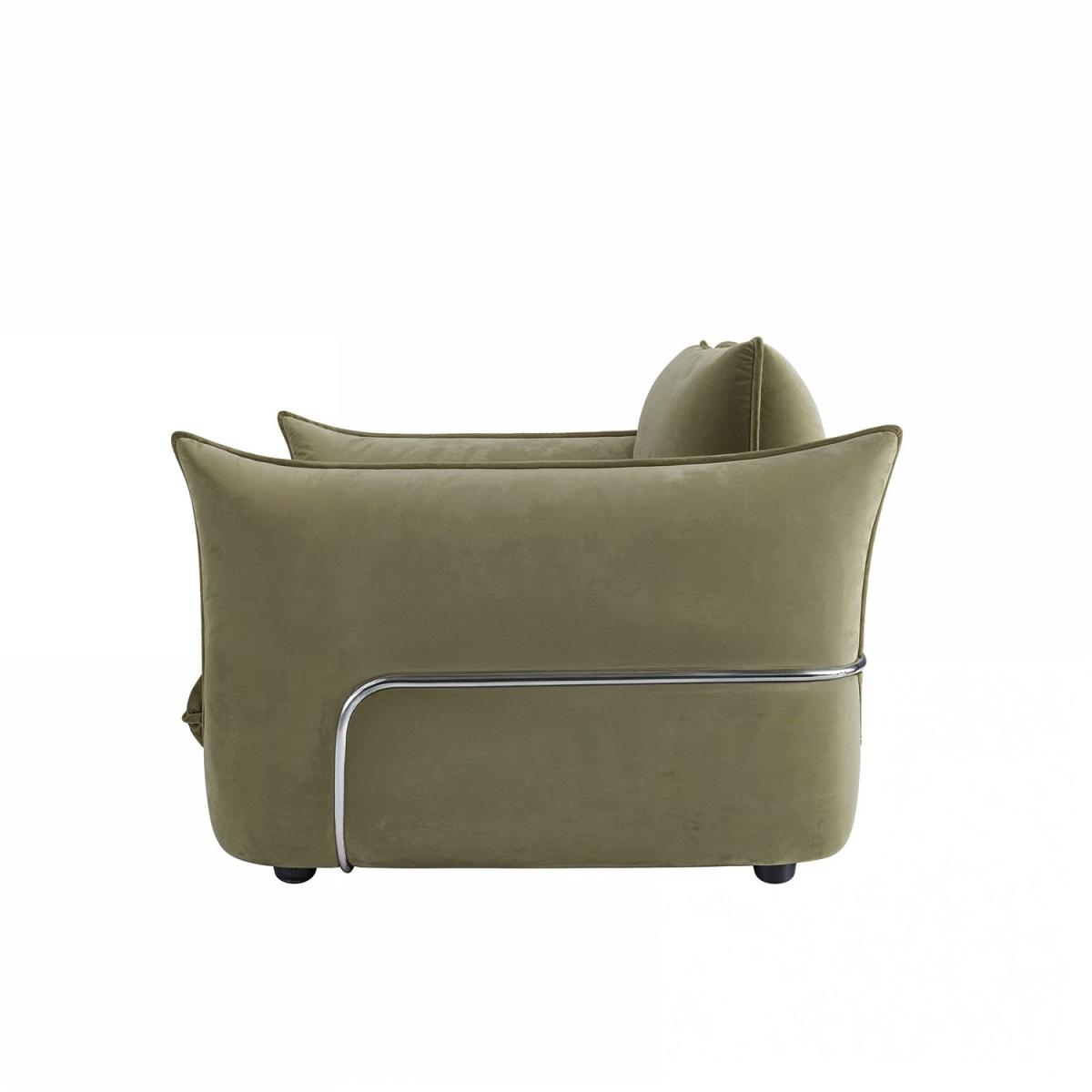 Wrapped in soft, velvety fabric, this armchair offers a plush, cosy finish, bringing an elegant touch to your space. With its sleek, contemporary lines, this armchair adds a modern flair to any room, blending effortlessly with your existing décor. Designed for relaxation, this armchair offers plush cushioning for a comfy, supportive seat, ideal for unwinding after a busy day. Perfect for the living room, bedroom, or lounge, it functions beautifully as a stylish accent chair or a comfortable reading nook. Its cosy design creates an inviting space to curl up with a book, offering comfort and style for quiet moments. The Sage Green Velvet Armchair – Santo combines luxurious comfort with modern design, making it the perfect addition to your living room or bedroom. Upholstered in soft velvet, this armchair exudes elegance and invites you to relax with its inviting, plush feel. With its contemporary silhouette, this armchair serves as both a stylish accent piece and a comfy lounge spot. Whether placed in your living room, bedroom, or reading nook, it provides the perfect space to unwind, read, or enjoy a quiet moment. The soothing sage green hue complements a wide range of interior styles, adding a touch of refined comfort to your home. Dimensions:W112 x D100 x H74 cm Packaging dimensions:W114x D102 x H76 cm Weight: 35.3 kg Maximum supported weight: 100 kg Seats: 1 person Colour:Sage Green Finish: Upholstery Material: Velvet Filling: Foam Assembly required: No Removable castor wheels:No