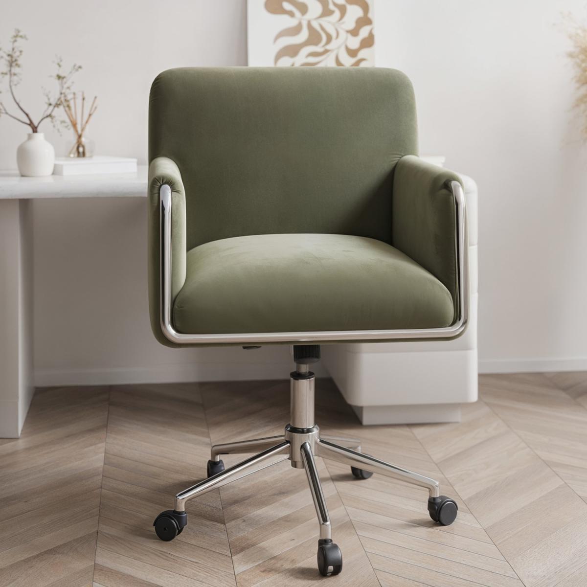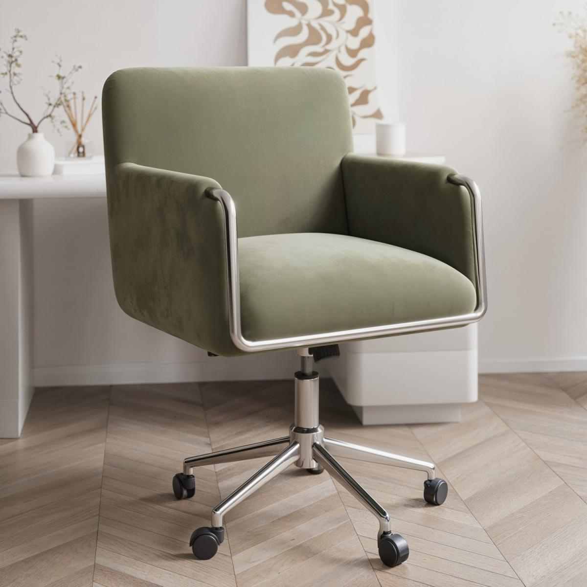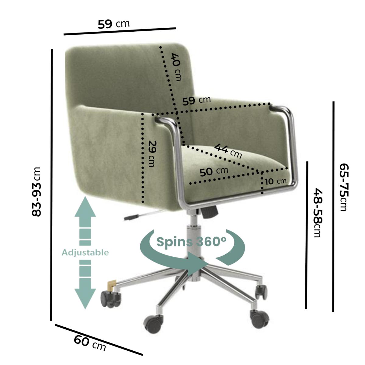 Provides a comfortable seating experience for extended periods, ideal for working, studying or relaxing. Easily adjustable to suit different desk heights, offering personalised comfort. Sleek, modern design that adds durability while complementing the chair’s overall aesthetic. Provides easy mobility, making it convenient to move between tasks or locations. Enjoy full flexibility and easy movement with a 360-degree rotating seat. Built with comfort and convenience in mind, this sleek office chair would enhance any office or home study. It features five wheels with castors which give you a 360⁰ degree swivel and freedom whilst you work. Plus, you can set it to the perfect working height with the gas-lift mechanism. Upholstered in a soft-to-touch velvet and contrasting polished chrome base, it's versatile enough to coordinate with existing furniture.