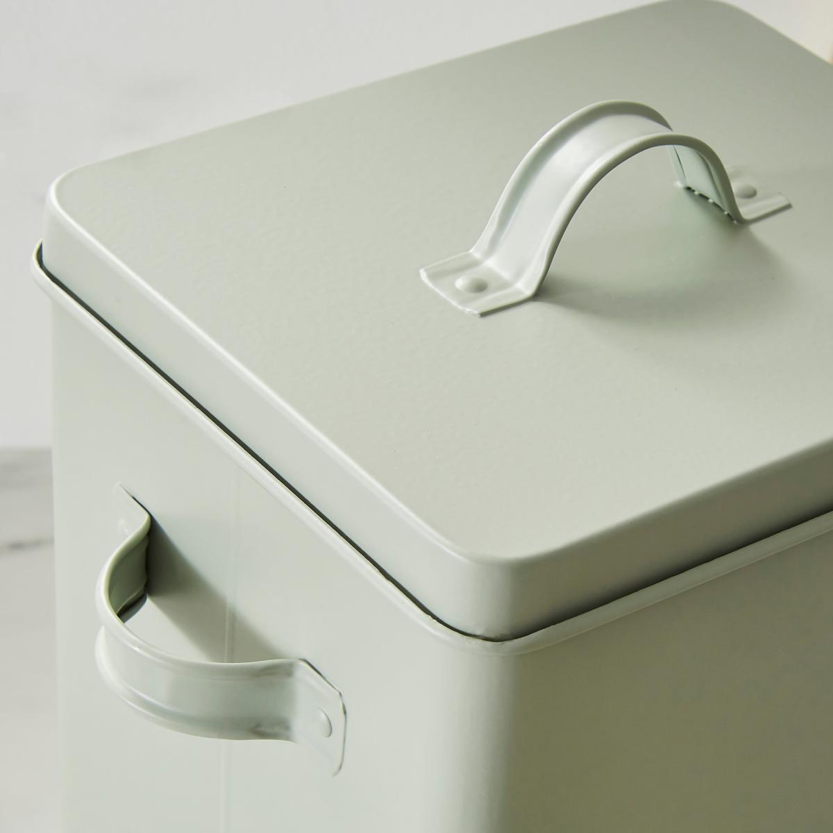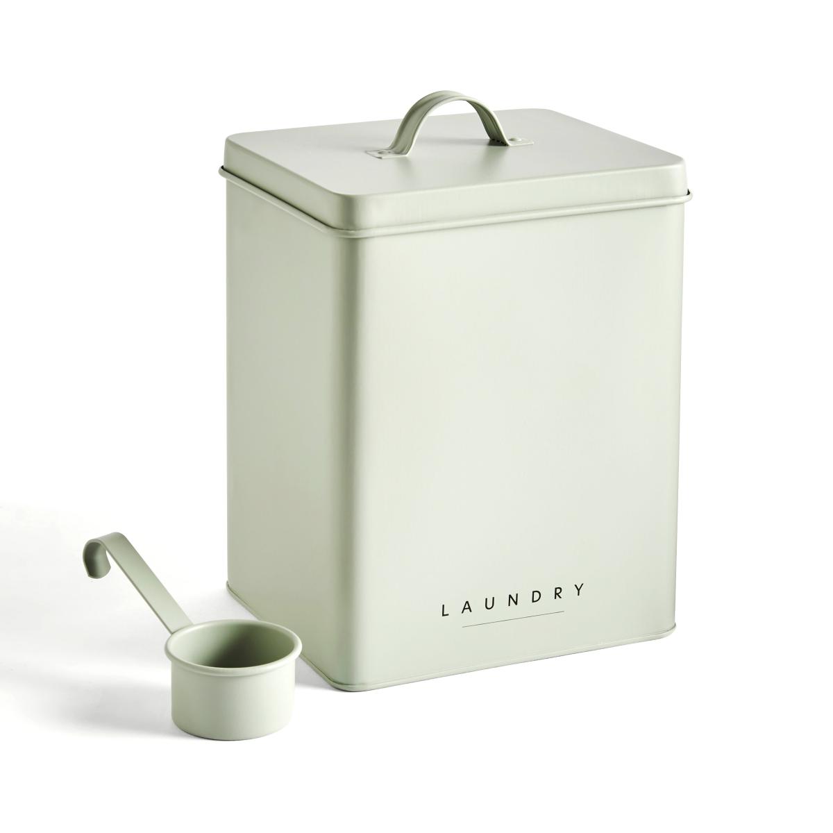 * Crafted from 100% metal* Sage green colour* Stylish storage solution* Perfect for storing laundry powder Say goodbye to laundry clutter with our laundry tin in sage. Crafted from 100% metal, it's not just a storage solution; it's a style statement. Tuck away your laundry powder neatly, and with the easy-to-clean surface, keeping it spick and span is a breeze. Organization meets elegance in your laundry space.