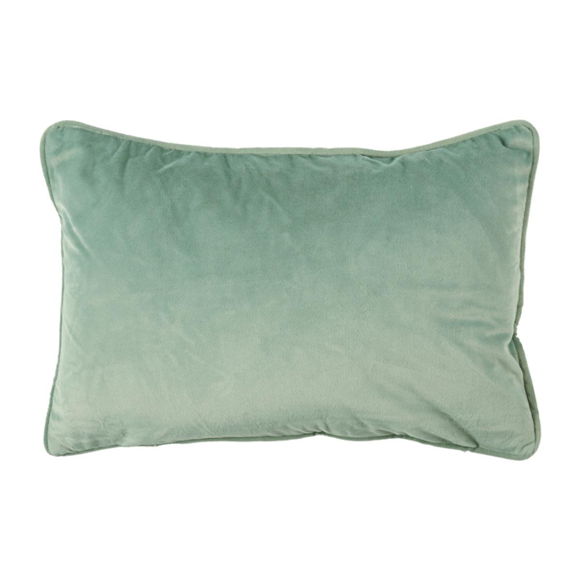 A self-piped sage coloured cushion, perfect for adding a hint of colour to your interior. 45cm x 30cm. Polyester velvet fabric. Supplied complete with hollowfibre pad. Zip fixing. Dry clean only, do not bleach or tumble dry.