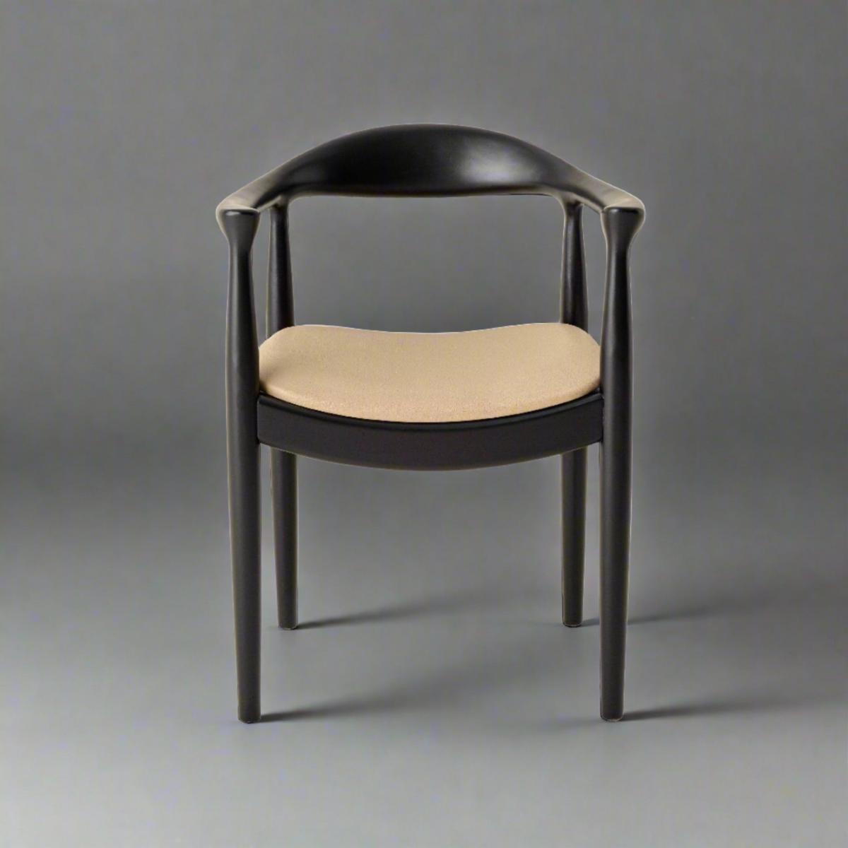 A curved round-back accent chair, with a nod to mid-century design and graphic shape to add personality to any room. Use for a comfortable dining chair, a living-room-meets-home-office solution, or for that chair by your bed - and with a design you won't want to hide, becomes a great deterrent from becoming a second wardrobe!