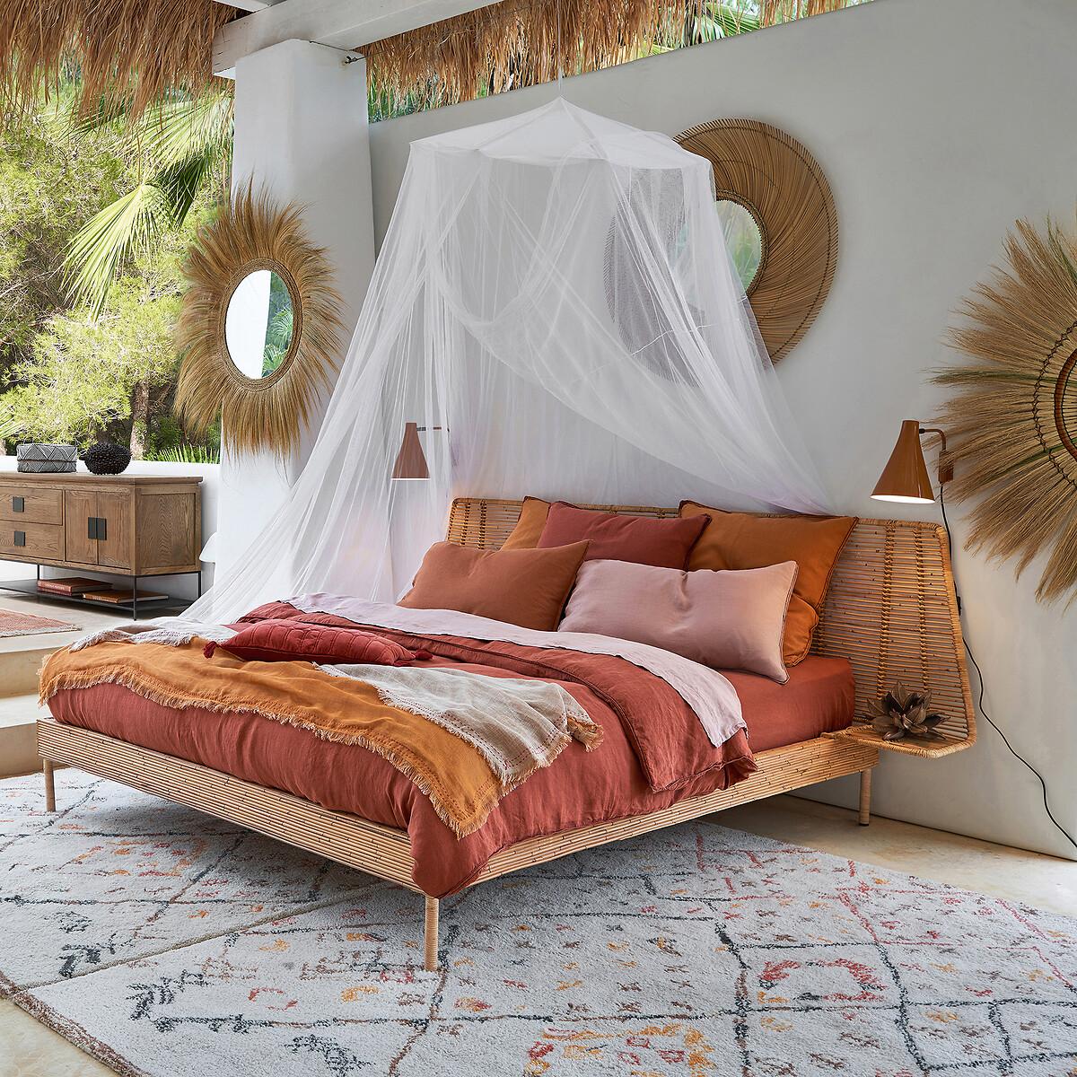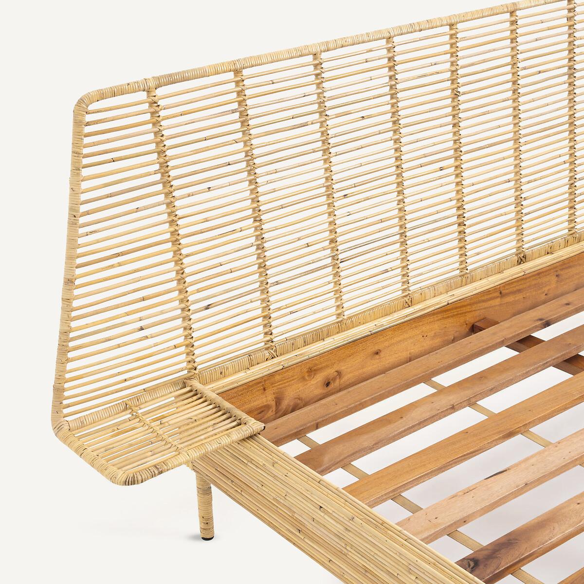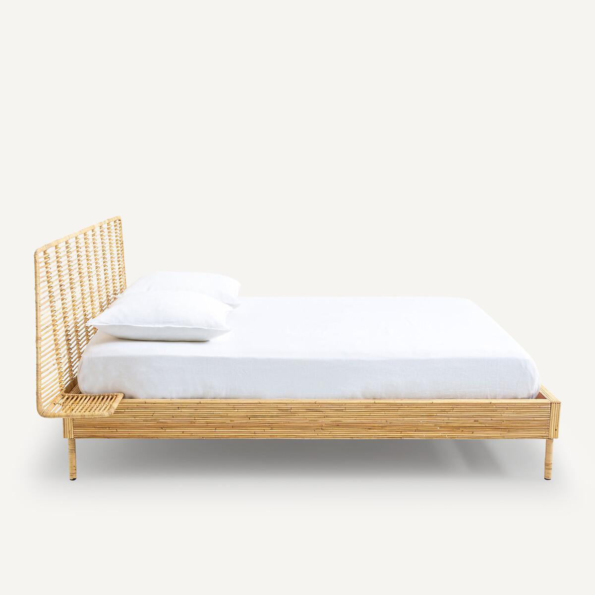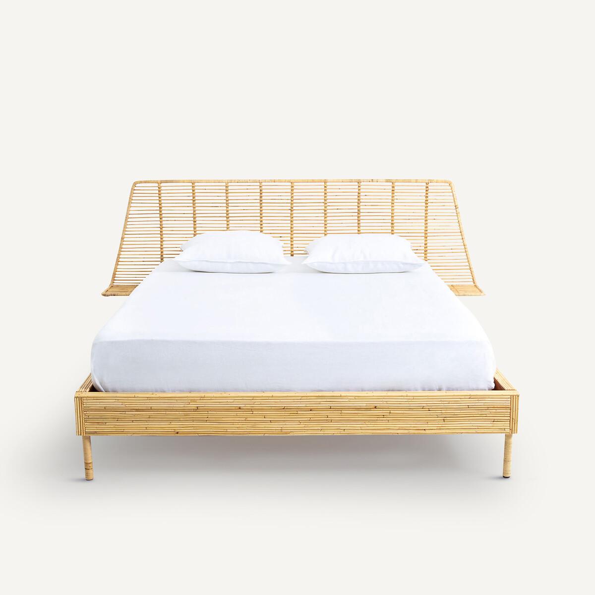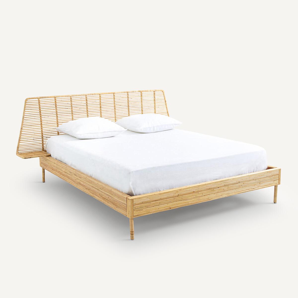 The Saghil Rattan Cane Bed. A simple and compact design which integrates the bed, headboard and bedside tables into a single structure, combining the tradition of artisanal weaving and contemporaneity.. Artisanal craftsmanship. Each piece is unique. Product Details • Mahogany structure covered with rattan cane • Headboard and nightstands in metal and rattan cane • Rattan-wrapped metal legs • Sold with mahogany slatted base. Dimensions • Sleeping area King (160 x 200cm) • Width 224.5 x Length 209.5cm • Height 95cm • Mattress height 30cmDelivery:. Assembly required. Available for home delivery. Dimensions and weight of parcel • 165 x 32 x 10cm - 18kg • 204 x 21 x 32.5cm - 36kg • 227 x 83 x 34cm - 22kg
