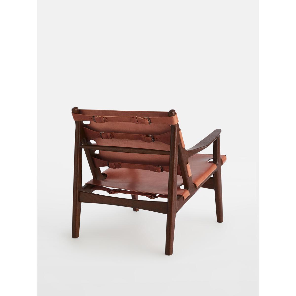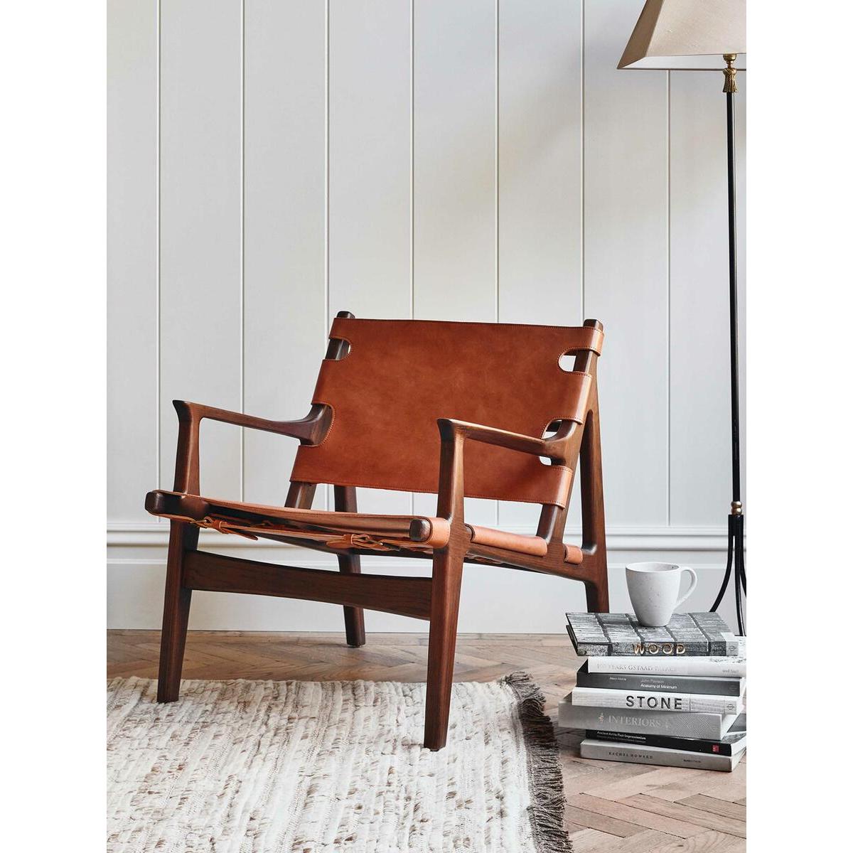 Crafted from solid oak, our Sagrada sling chair is wrapped inchestnut vegetable-tanned leather that will develop a unique patinawith age - inspired by similar designs at Soho House Barcelona. It's detailed with equestrian-inspired buckled straps at the backand base for a classic, heritage feel. Solid oak frame. Vegetable-dyed chestnut leather seat and back.