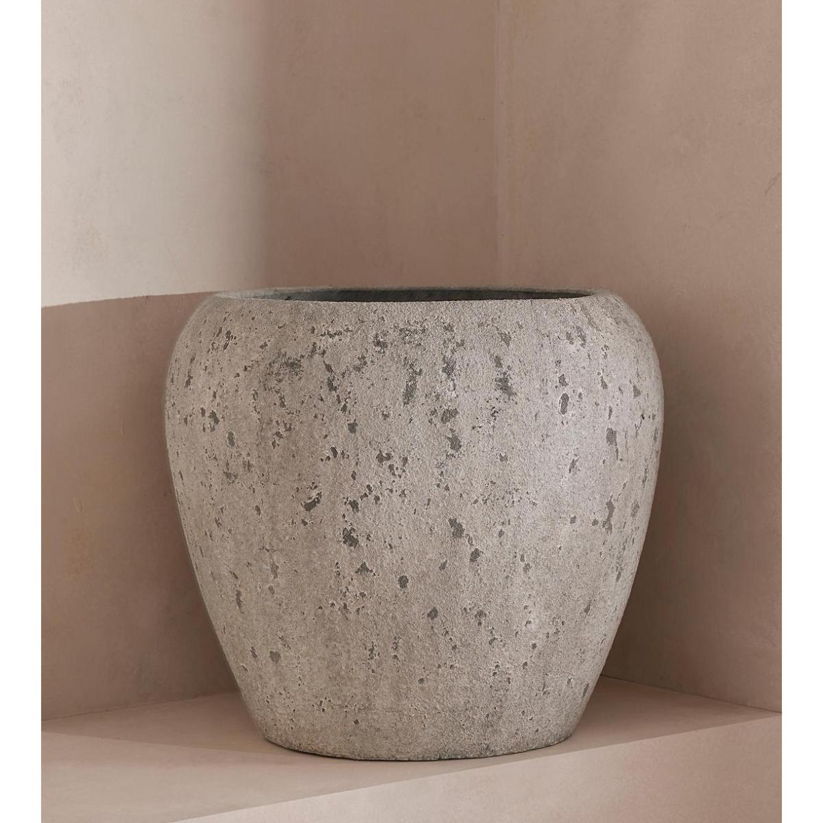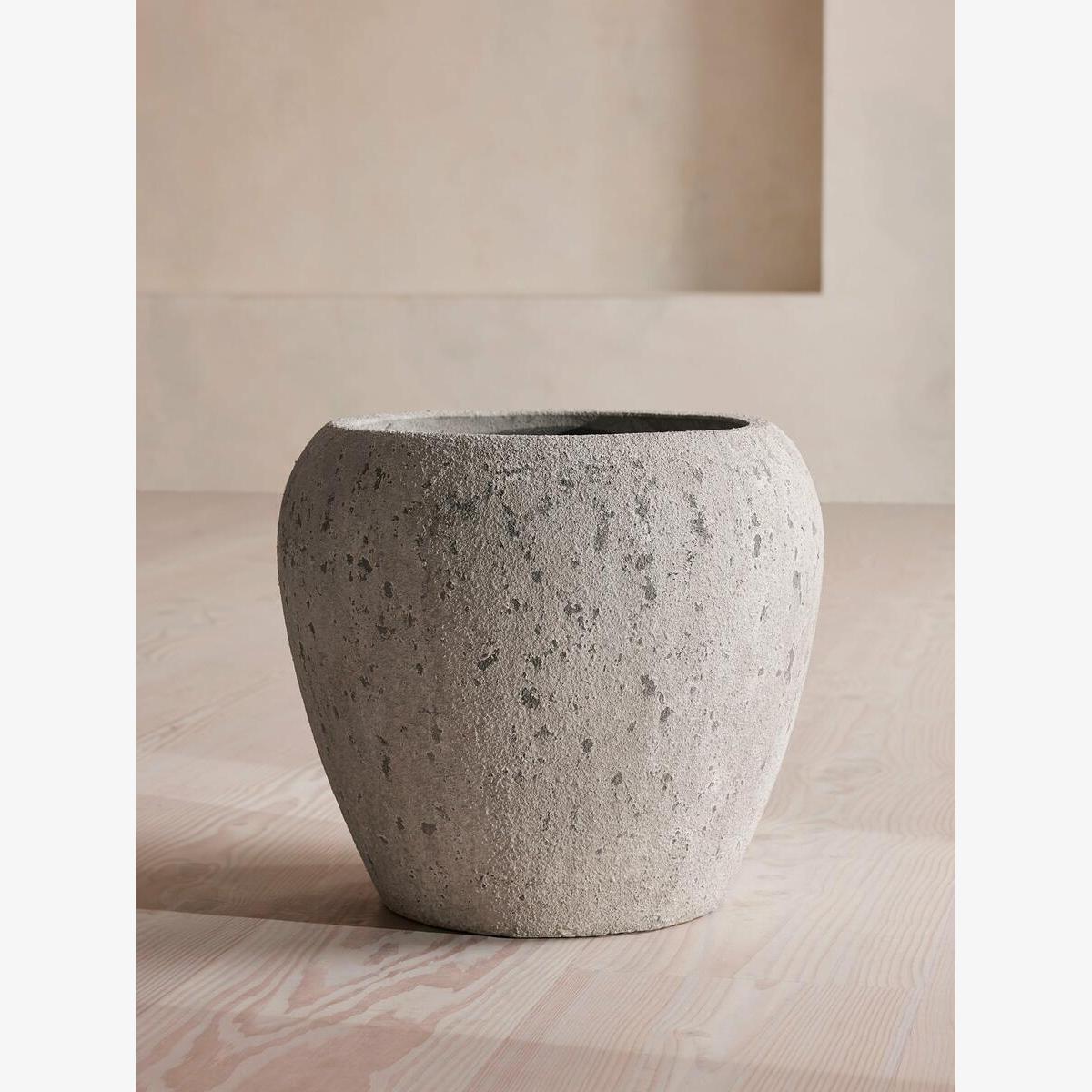 The Sagres planter is inspired by the relaxed, coastal interiors of Soho Roc House in Mykonos. Crafted from cement, it has a raw, distressed texture that brings an earthy quality to patios and decking in a versatile grey colourway. Wide cement planter Grey colouring Distressed textured exterior Made to be mixed and matched with the larger size Inspired by Soho Roc House