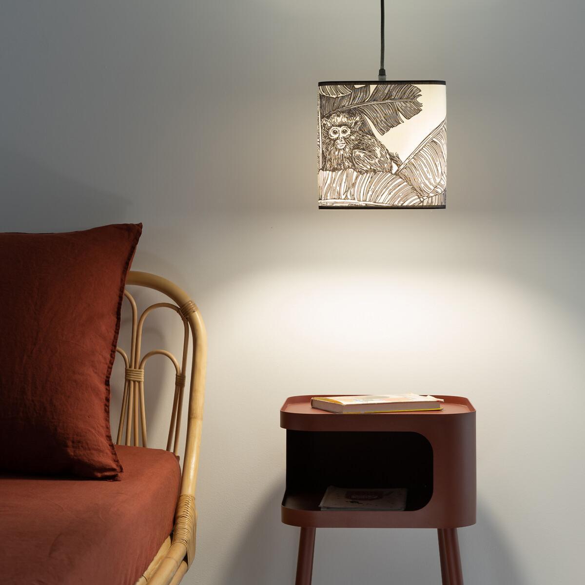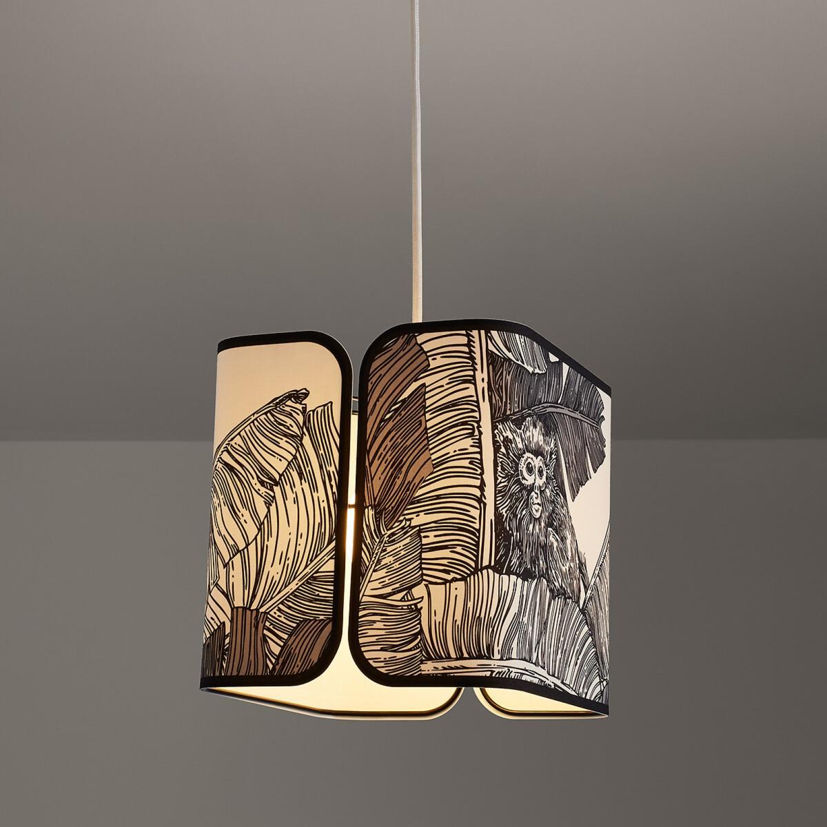 I love the Saida Iquitos lamp for its playful yet stylish design, making it a great statement piece in children’s rooms or creative spaces. Its tropical-inspired print adds a touch of fun and whimsy, while the neutral tones ensure it can blend seamlessly with various colour schemes. It works particularly well in interiors with a boho, nature-inspired, or eclectic vibe, adding personality without overpowering the space. For styling, consider pairing it with soft, natural textiles and other botanical accents to create a cohesive look. Hanging it at different heights or layering with additional lighting can help make the room feel inviting and well-lit, all while ensuring the design delivers a bit of personality to the space.