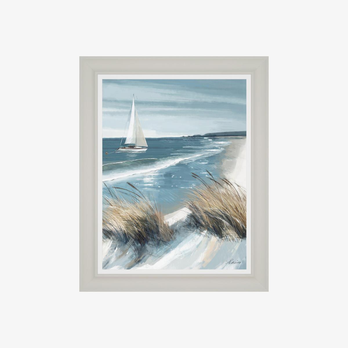 I love how the sailboat scene brings a sense of calm and escape, making it versatile for various interior styles. It works particularly well in seaside-inspired spaces, coastal cottages, or modern neutral rooms that benefit from a touch of colour and visual interest. For styling, consider pairing it with light wood frames or minimalist surrounds to keep the look fresh and clean. It’s also a great piece to hang above a sofa or console table in living rooms or hallways, creating a focal point that invites relaxation. To maximise its impact, keep surrounding decor simple and let the artwork stand out.