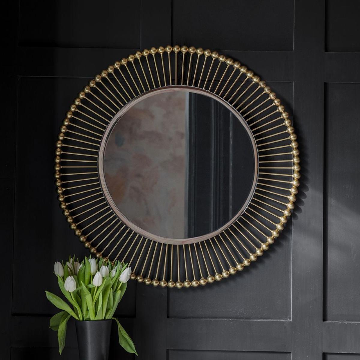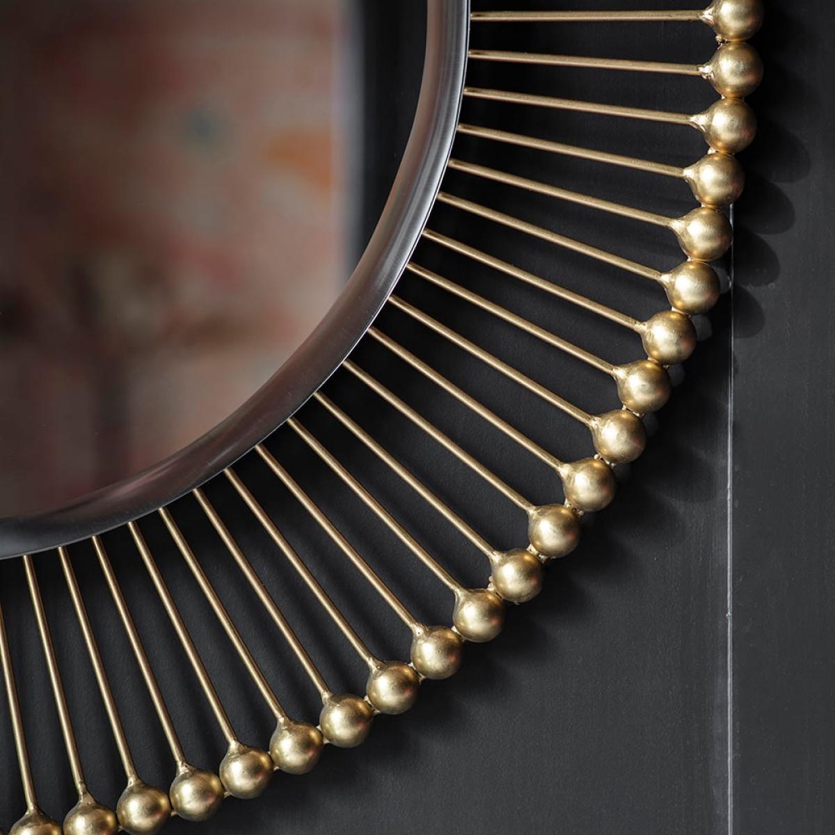 Add a focal point to your living space, dining area, hallway, bedroom or bathroom with our sunburst style Saint-Germain Round Mirror. This large brass round mirror has a joyful sunburst design while its generous size makes it perfect for bouncing light around a room to create a feeling of space in a dark or narrow hallway. This round mirror with wide frame will also look stunning teamed with our matching Saint-Germain coffee table and console for a co-ordinated finish in your home.