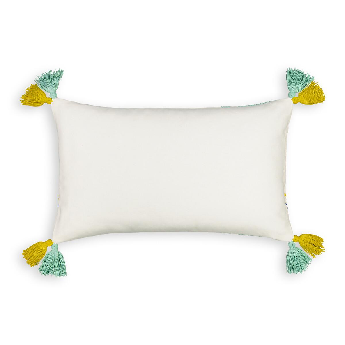 Set of embroidered patterns in tonal colours. Inspired by Berber craftsmanship. The Sajia cushion cover is ideal for quirky decors. Created by La Redoute Interiors. Product Details • 100% cotton • Front in woven stripes with placed embroidery • Plain on back • Tassels in each corner • Zip fastening. Size • 50 x 30cm