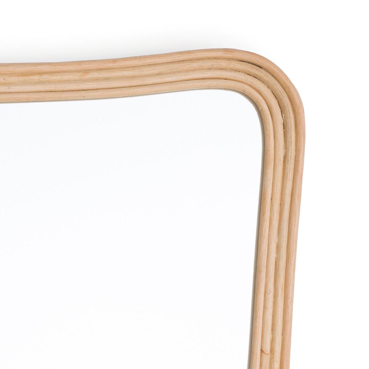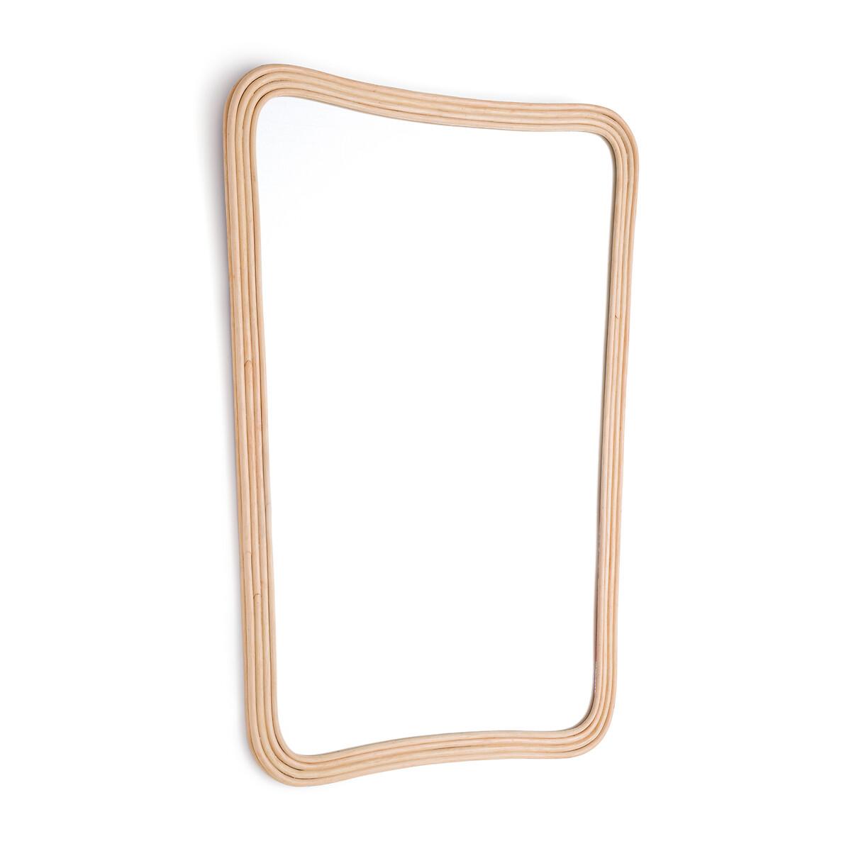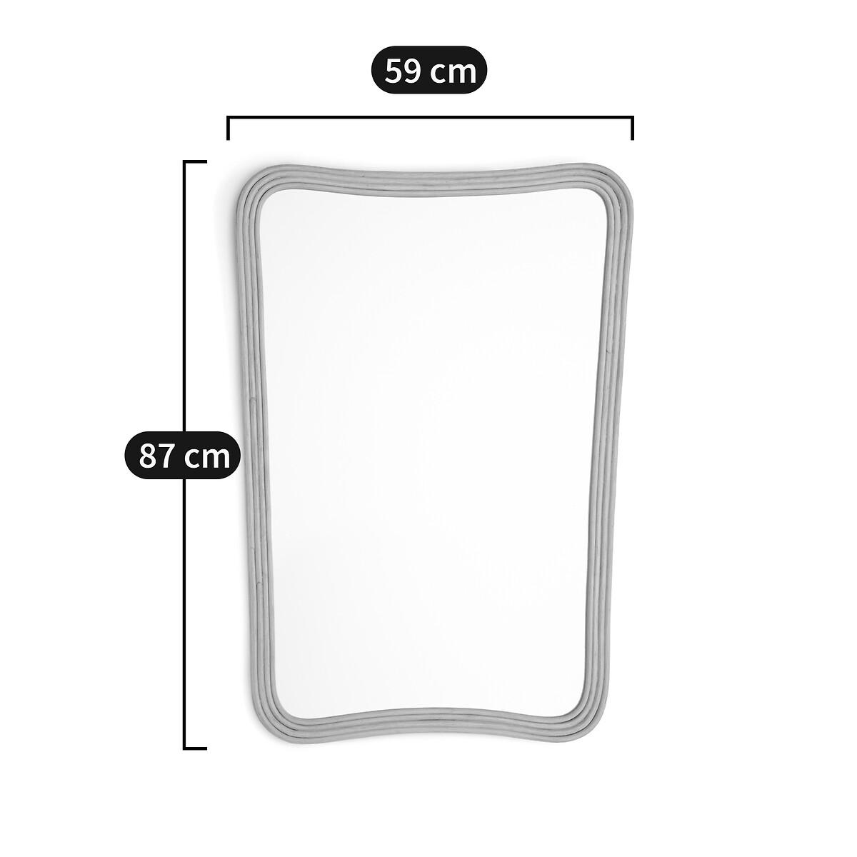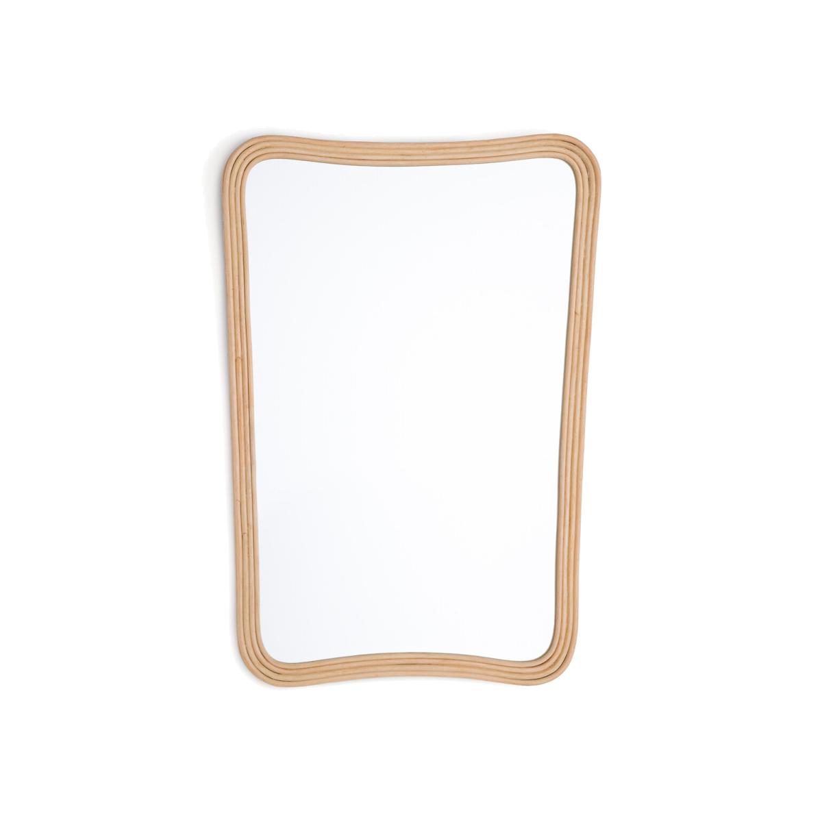 Organic shape, grooved edges... The Sakhara rattan mirror combines sophisticated aesthetics and artisanal manufacturing. A beautiful balance of elegance and harmony. Product Details • In painted and varnished rattan • Wall fixing (screws and plugs not supplied)Quality Info • Hand-crafted, each piece is unique: colours and dimensions may vary from product to product. Dimensions • Width: 59cm • Height: 87cm Parcel dimensions and weight • 1 parcel • L63 x H92 x D7cm. 6.4kg
