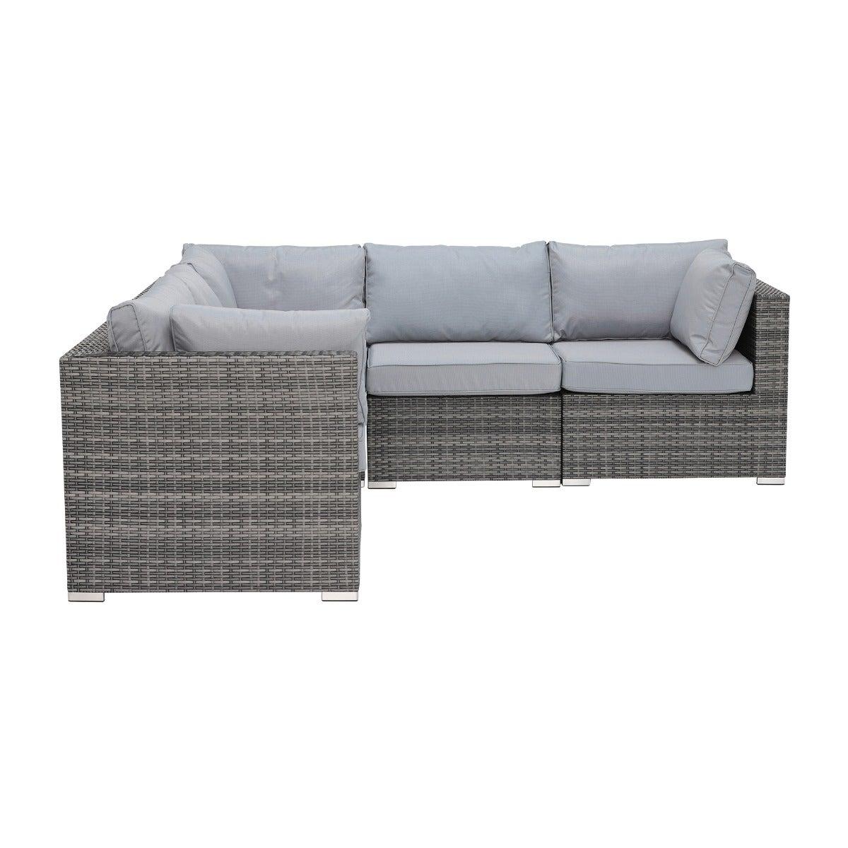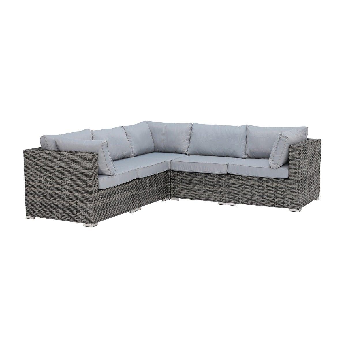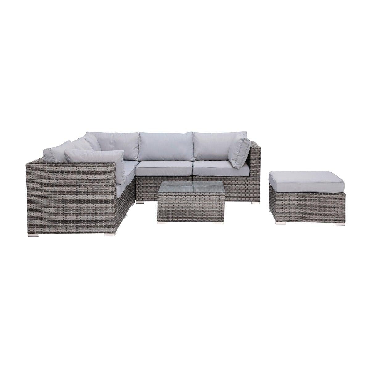 Design. This classic Salcombe Corner Garden Set. Provides plenty of seating space. To entertain family and friends, including a sumptuous corner sofa, coffee table and stool. The cosy deep-filled cushions have removable covers for an easy. Clean, and. Come in a stylish grey to allow the colours of your garden to stand out. The rattan weave frame is UV protected to ensure. It’s. High quality will last many summers, and is also easily wipeable. Salcombe is the perfect addition to any modern garden or patio.