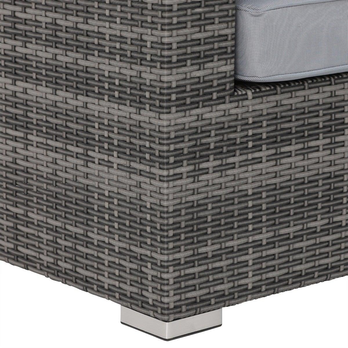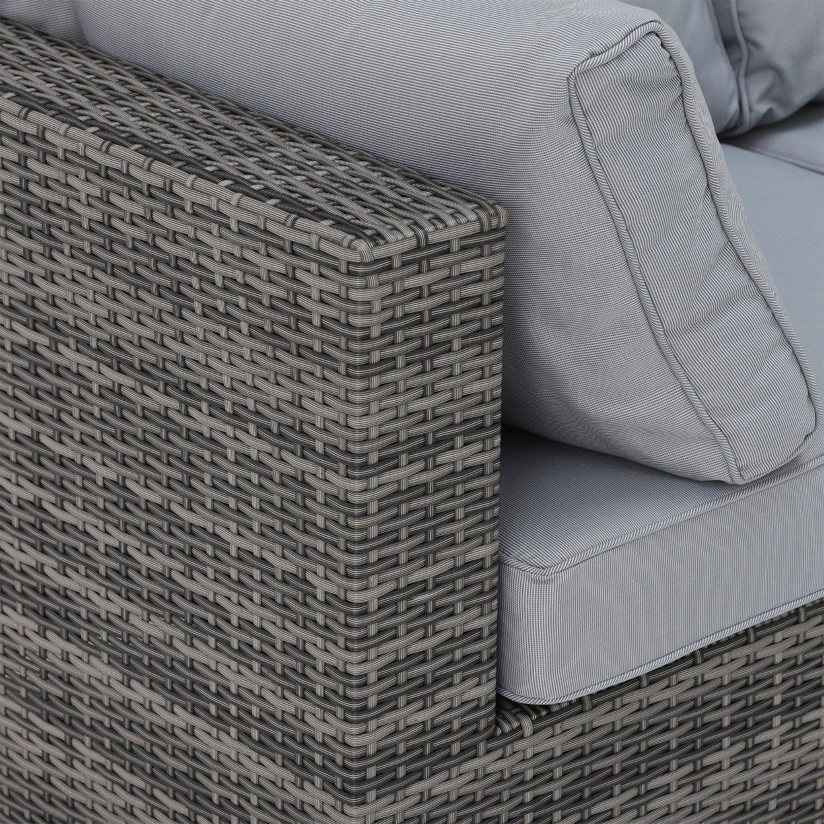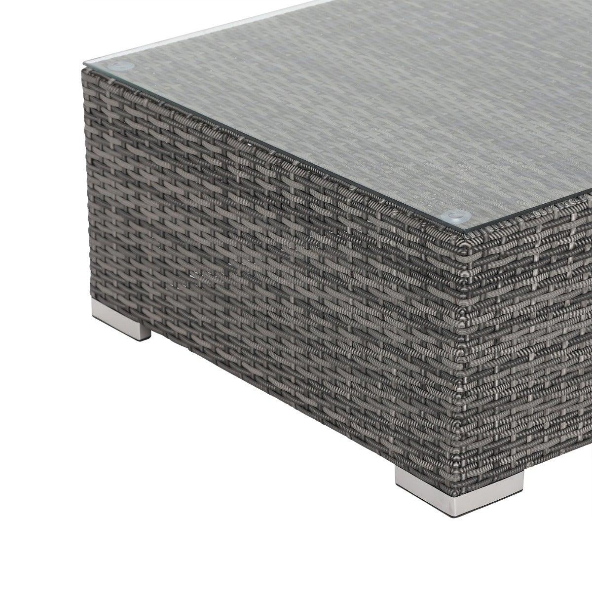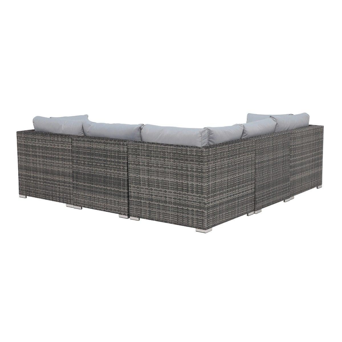 Design. This classic Salcombe Corner Garden Set. Provides plenty of seating space. To entertain family and friends, including a sumptuous corner sofa, coffee table and stool. The cosy deep-filled cushions have removable covers for an easy. Clean, and. Come in a stylish grey to allow the colours of your garden to stand out. The rattan weave frame is UV protected to ensure. It’s. High quality will last many summers, and is also easily wipeable. Salcombe is the perfect addition to any modern garden or patio.