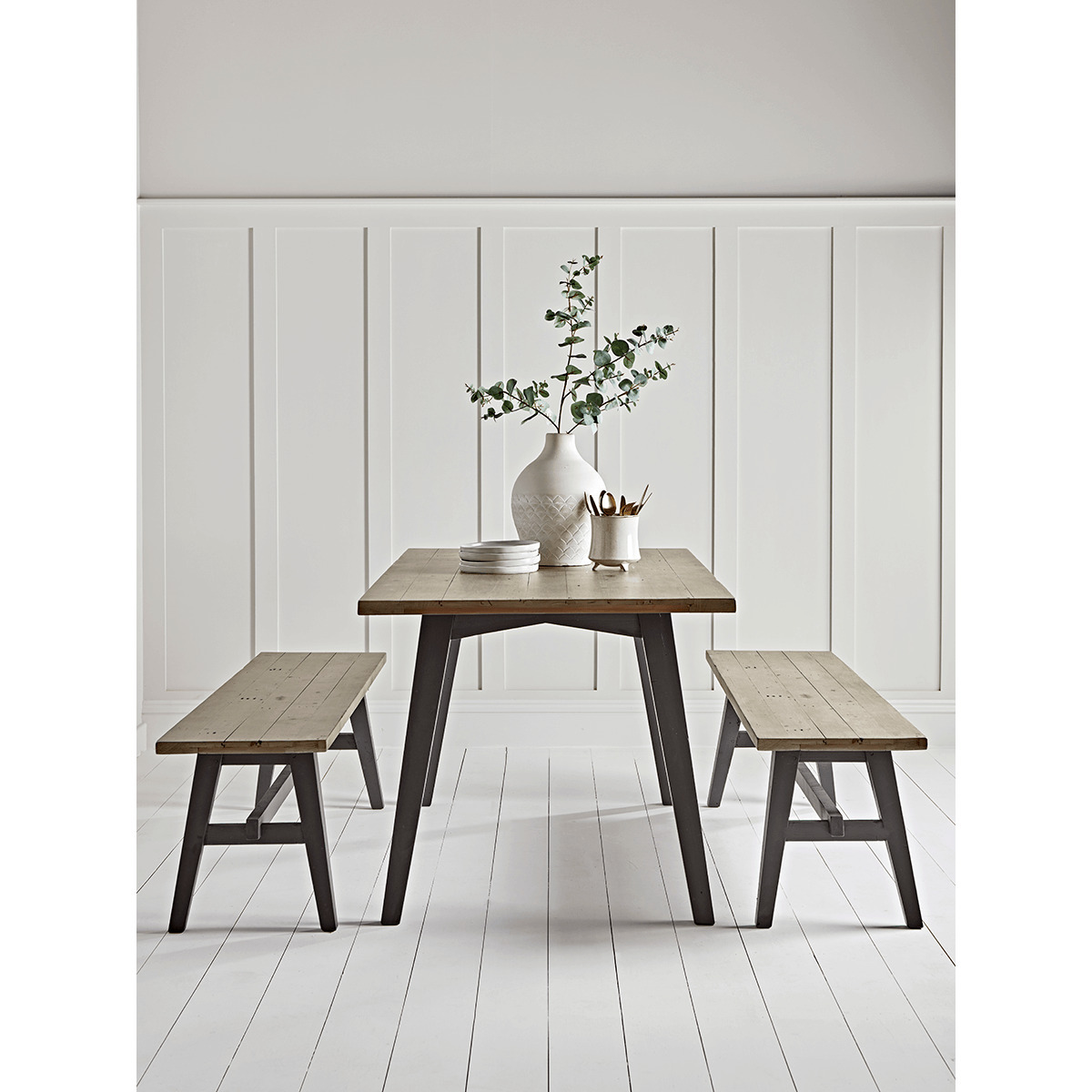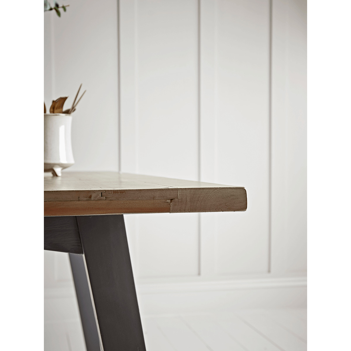 Full of relaxed modern style, our Salcombe range is beautifully simple, well-considered and practical. The natural warmth and patterning of the reclaimed wood coupled with the contrast dark frame will instantly elevate the look of any space. Our table is available as a standard fixed top table or as an extendable table that extends to accommodate additional chairs at its length. Pair with our. Salcombe Bench. To complete the look. A. Round. Dining table is also available in the range.