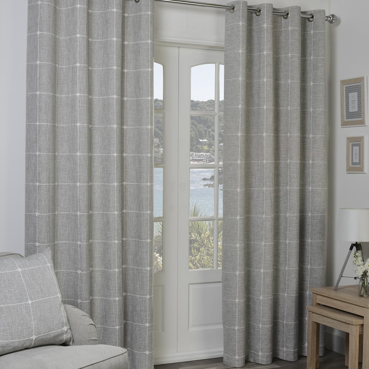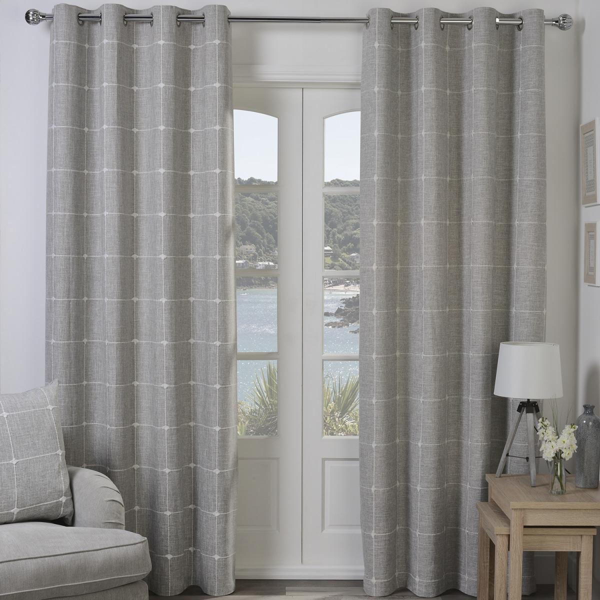 Salcombe Linen Check Curtains - Grey / 168cm / 183cm
