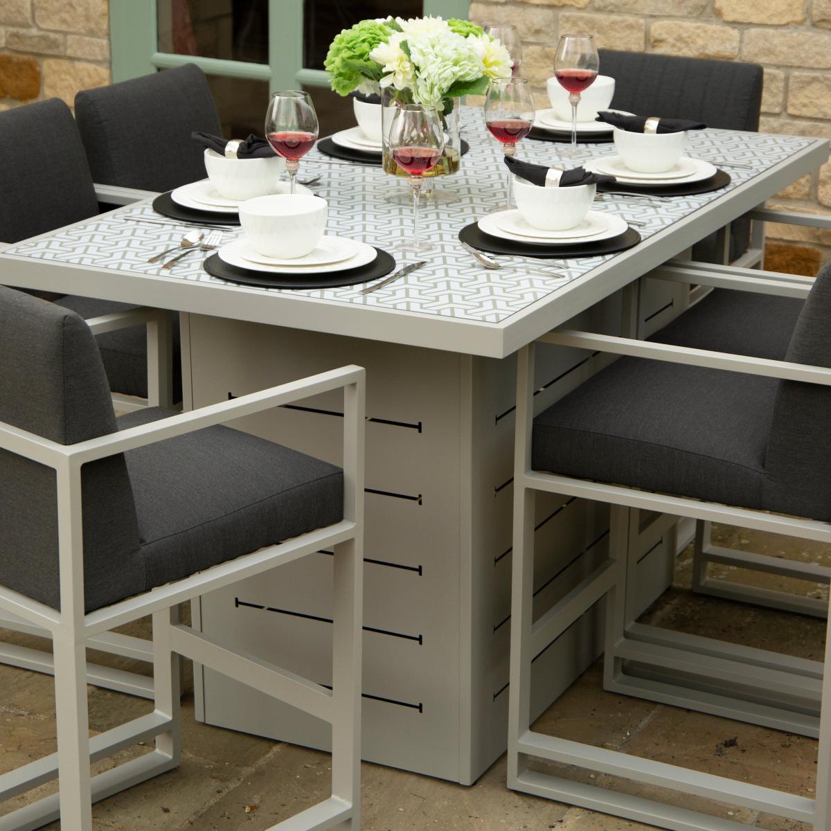 Introducing our Salcombe Outdoor Living range of Garden Furniture. Transform your outdoor space with our incredible selection of highly fashionable, designer pieces, certain to take your breath away. Combining clean lines with on-trend colour fabrics, each piece is made to the highest quality, ensuring your garden is ready for hosting whatever the weather. From impressive dining and sofa sets to sunloungers, Salcombe Outdoor Living is set to make a stylish addition to those looking to really make a statement with premium garden furniture. Dimensions listed is for the Table only. Individual item dimensions, and set composition, as follows:. 1 x Bar Table - W: 170cm x D: 100cm x H: 100cm. 6 x Bar Stool - W: 53cm x D: 60cm x H: 110cm.