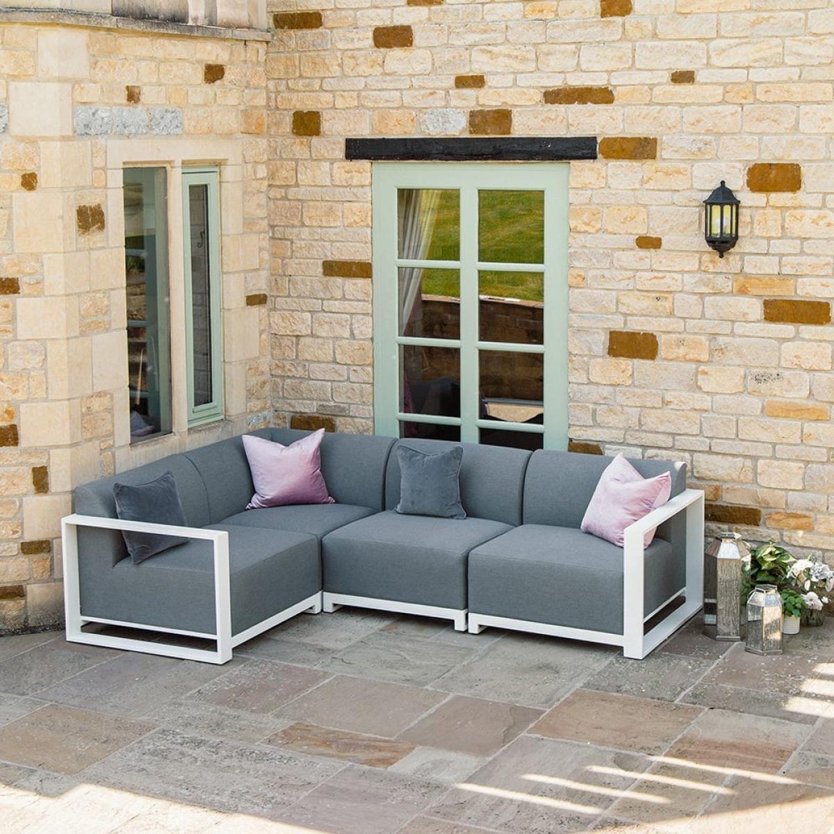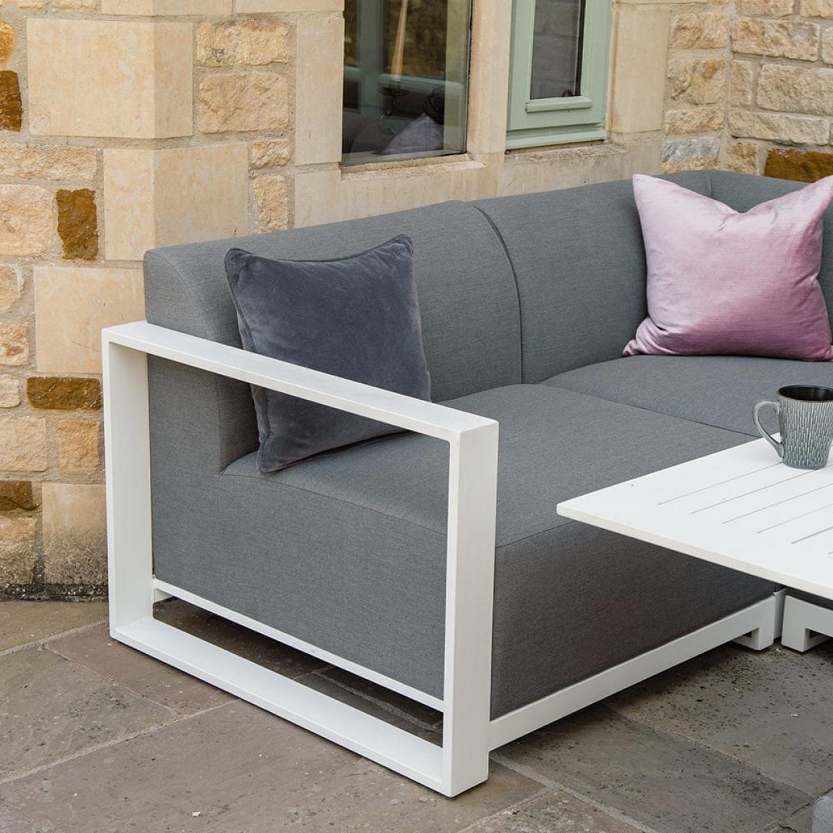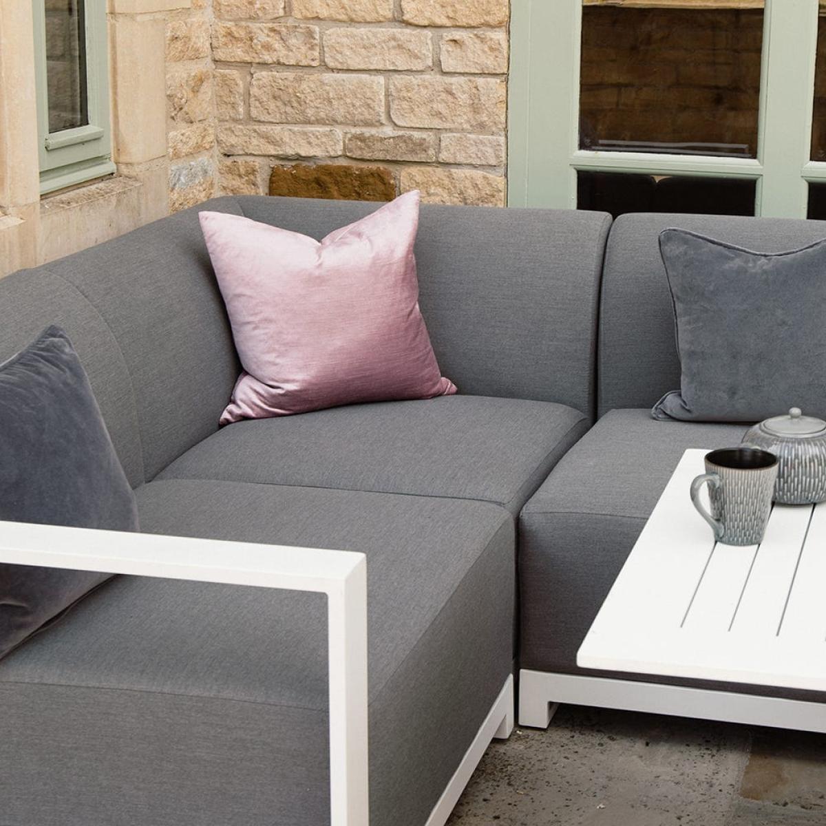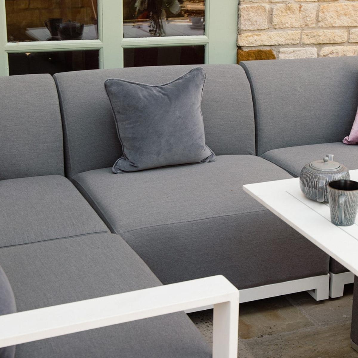 Introducing our Salcombe Outdoor Living range of Garden Furniture. Transform your outdoor space with our incredible selection of highly fashionable, designer pieces, certain to take your breath away. Combining clean lines with on-trend colour fabrics, each piece is made to the highest quality, ensuring your garden is ready for hosting whatever the weather. From impressive dining and sofa sets to sunloungers, Salcombe Outdoor Living is set to make a stylish addition to those looking to really make a statement with premium garden furniture. Dimensions listed is the dimensions of the sofa set when it's set-up as pictured. Individual item dimensions, and set composition, as follows:. 1 x Middle Section - W: 80cm x D: 90cm x H: 76. 5cm. 1 x Left and Right End Sections - W: 90cm x D: 90cm x H: 76. 5cm (each). 1 x Corner Section - W: 90cm x D: 90cm x H: 76. 5cm.
