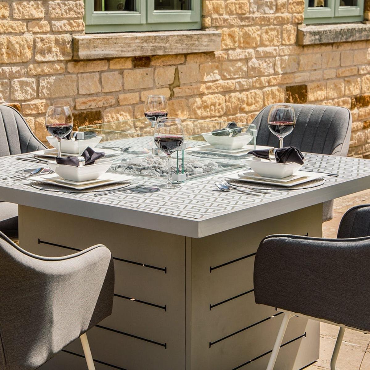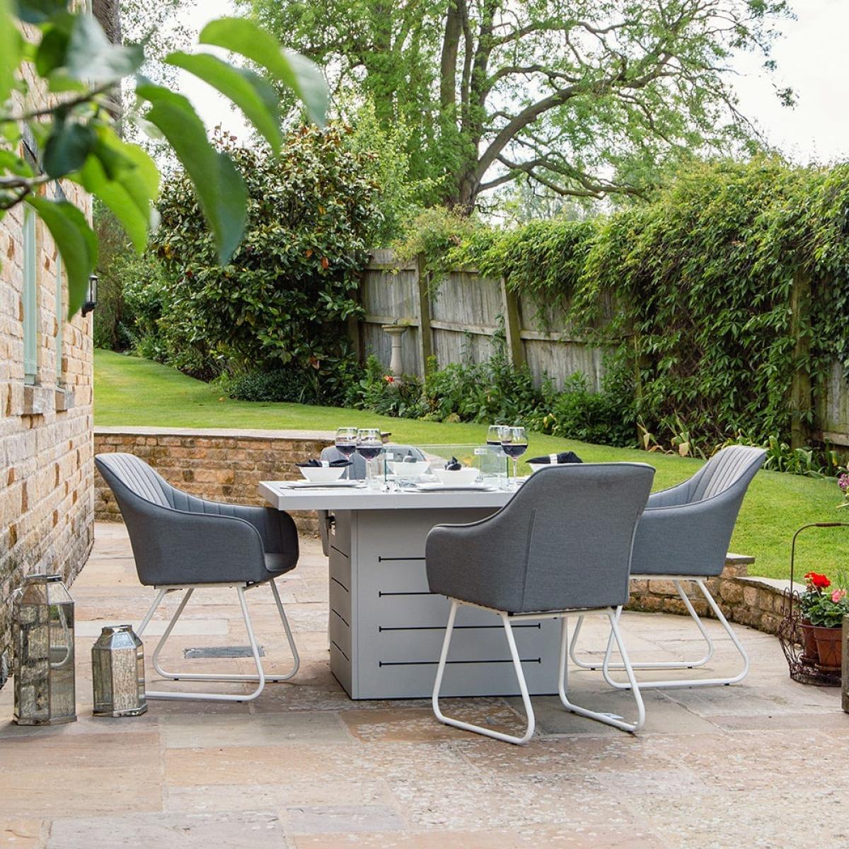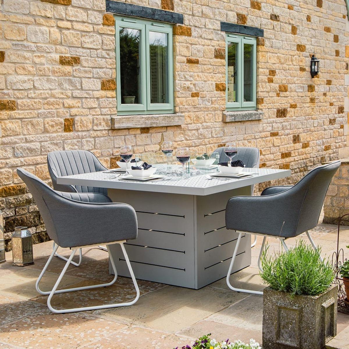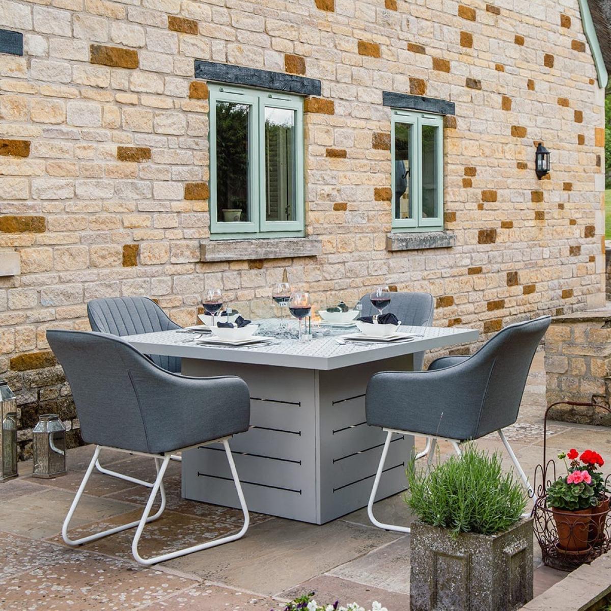 Introducing our Salcombe Outdoor Living range of Garden Furniture. Transform your outdoor space with our incredible selection of highly fashionable, designer pieces, certain to take your breath away. Combining clean lines with on-trend colour fabrics, each piece is made to the highest quality, ensuring your garden is ready for hosting whatever the weather. From impressive dining and sofa sets to sunloungers, Salcombe Outdoor Living is set to make a stylish addition to those looking to really make a statement with premium garden furniture. Dimensions listed is for the Table only. Individual item dimensions, and set composition, as follows:. 1 x Dining Table with Firepit - W: 130cm x D: 130cm x H: 71cm. 4 x Dining Chair - W: 68cm x D: 59. 5cm x H: 90. 5cm.