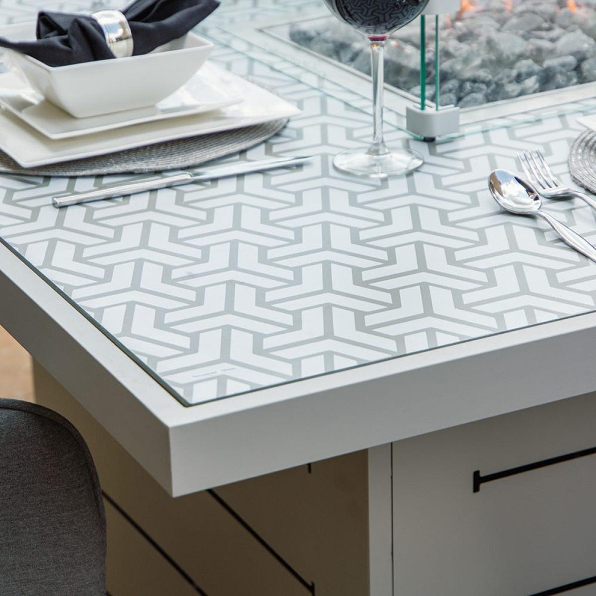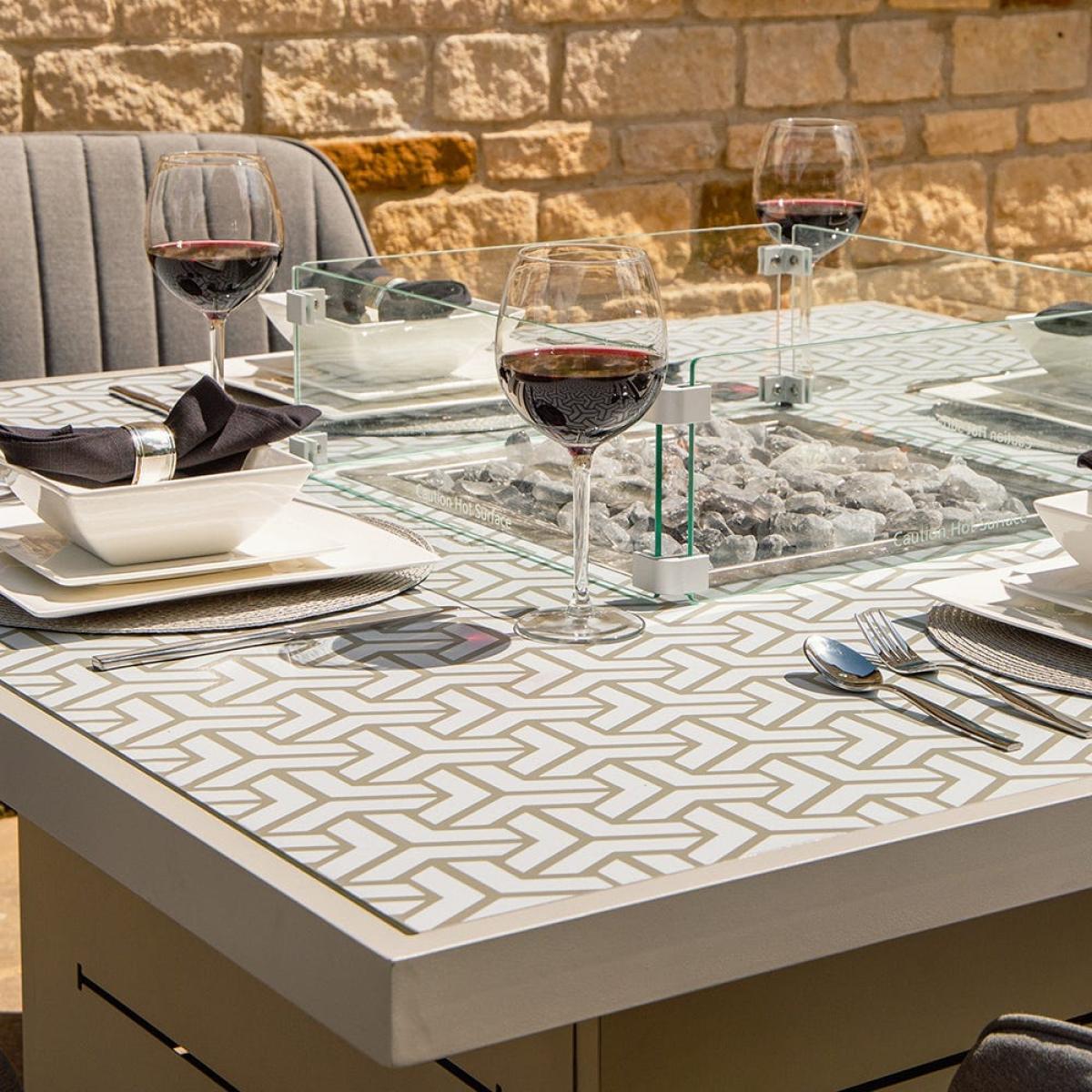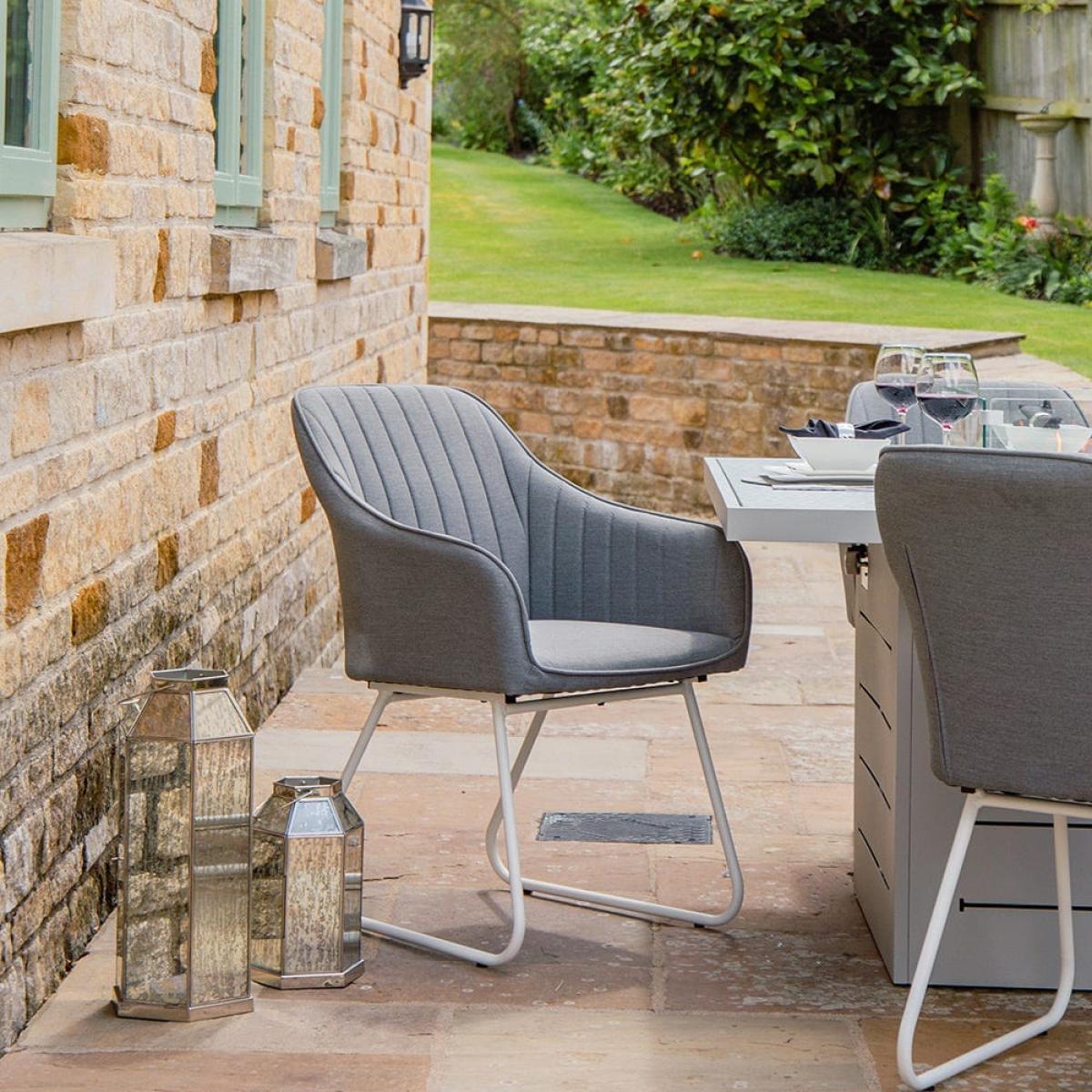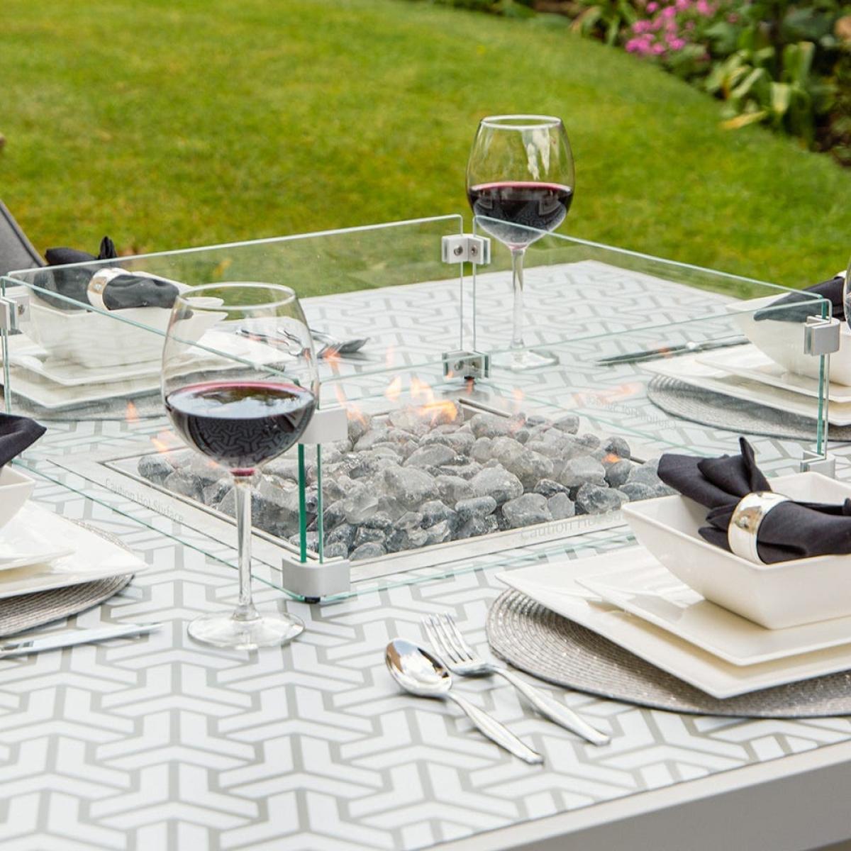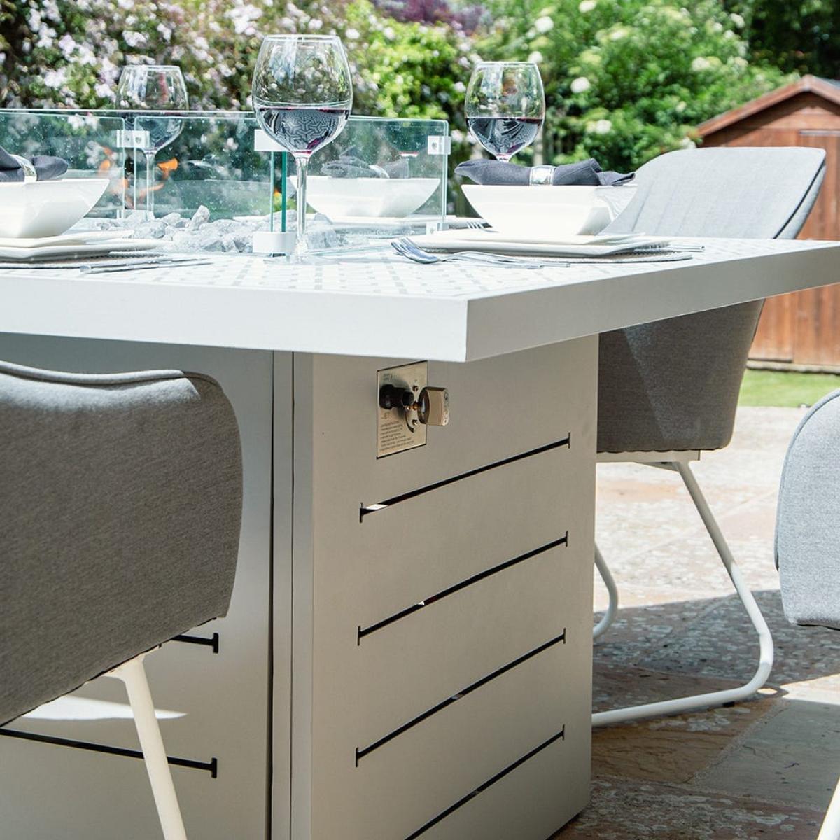 Introducing our Salcombe Outdoor Living range of Garden Furniture. Transform your outdoor space with our incredible selection of highly fashionable, designer pieces, certain to take your breath away. Combining clean lines with on-trend colour fabrics, each piece is made to the highest quality, ensuring your garden is ready for hosting whatever the weather. From impressive dining and sofa sets to sunloungers, Salcombe Outdoor Living is set to make a stylish addition to those looking to really make a statement with premium garden furniture. Dimensions listed is for the Table only. Individual item dimensions, and set composition, as follows:. 1 x Dining Table with Firepit - W: 130cm x D: 130cm x H: 71cm. 4 x Dining Chair - W: 68cm x D: 59. 5cm x H: 90. 5cm.