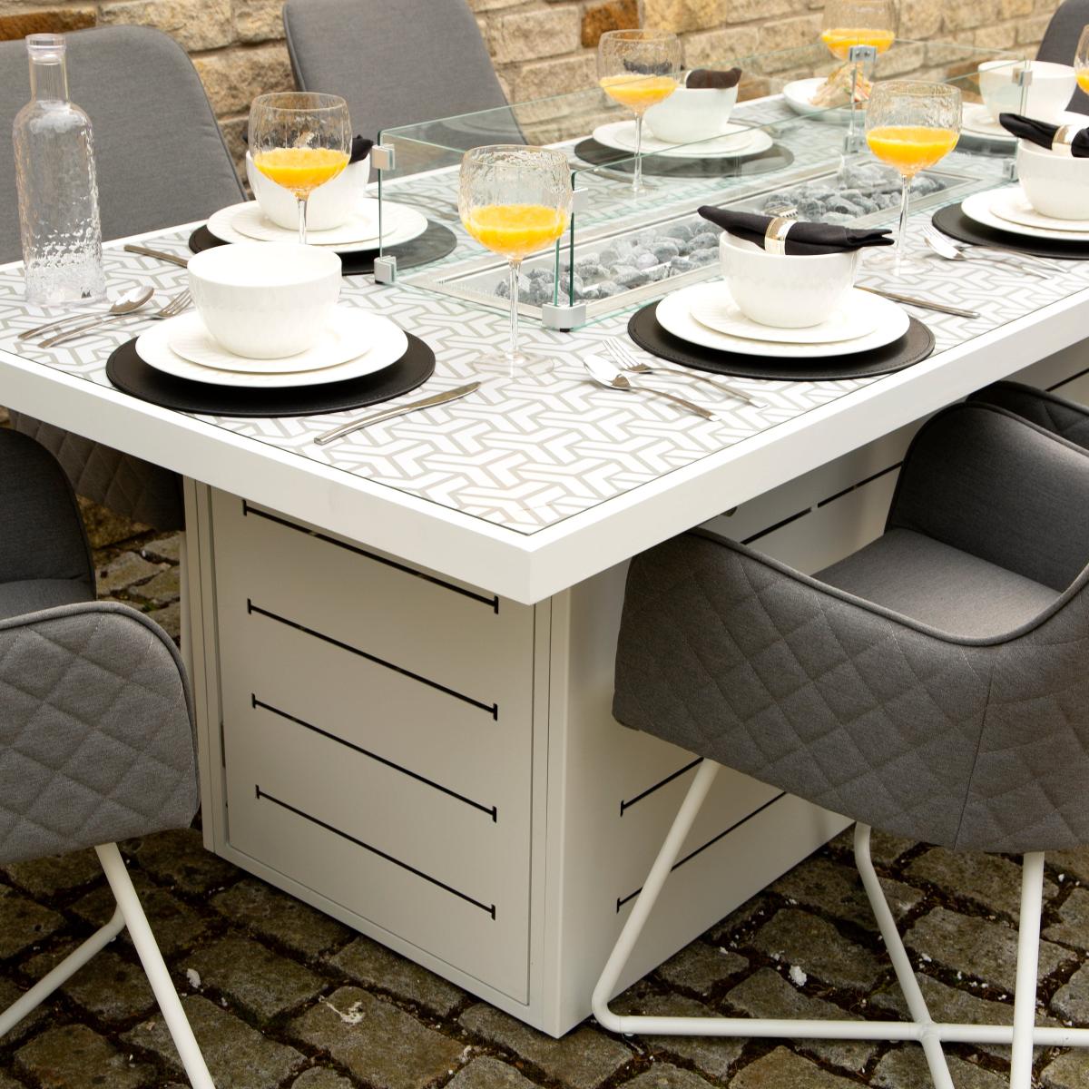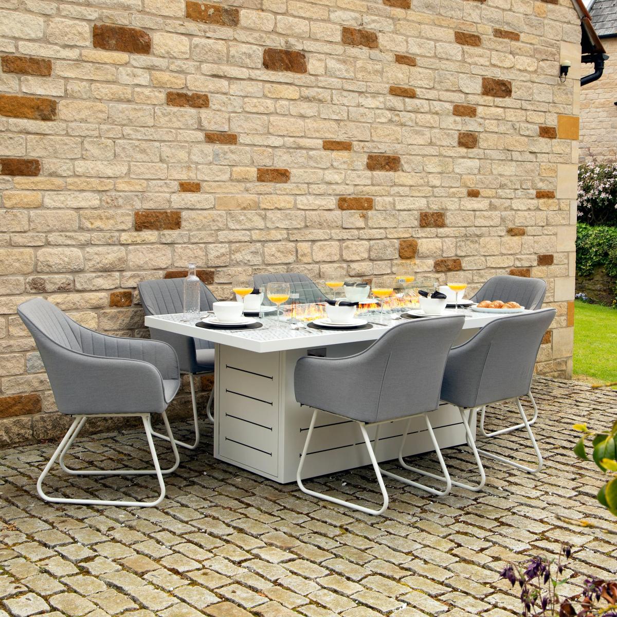 Introducing our Salcombe Outdoor Living range of Garden Furniture. Transform your outdoor space with our incredible selection of highly fashionable, designer pieces, certain to take your breath away. Combining clean lines with on-trend colour fabrics, each piece is made to the highest quality, ensuring your garden is ready for hosting whatever the weather. From impressive dining and sofa sets to sunloungers, Salcombe Outdoor Living is set to make a stylish addition to those looking to really make a statement with premium garden furniture. Dimensions listed is for the Table only. Individual item dimensions, and set composition, as follows:. 1 x Dining Table with Firepit - W: 200cm x D: 100cm x H: 75cm. 6 x Dining Chair - W: 68cm x D: 59. 5cm x H: 90. 5cm.