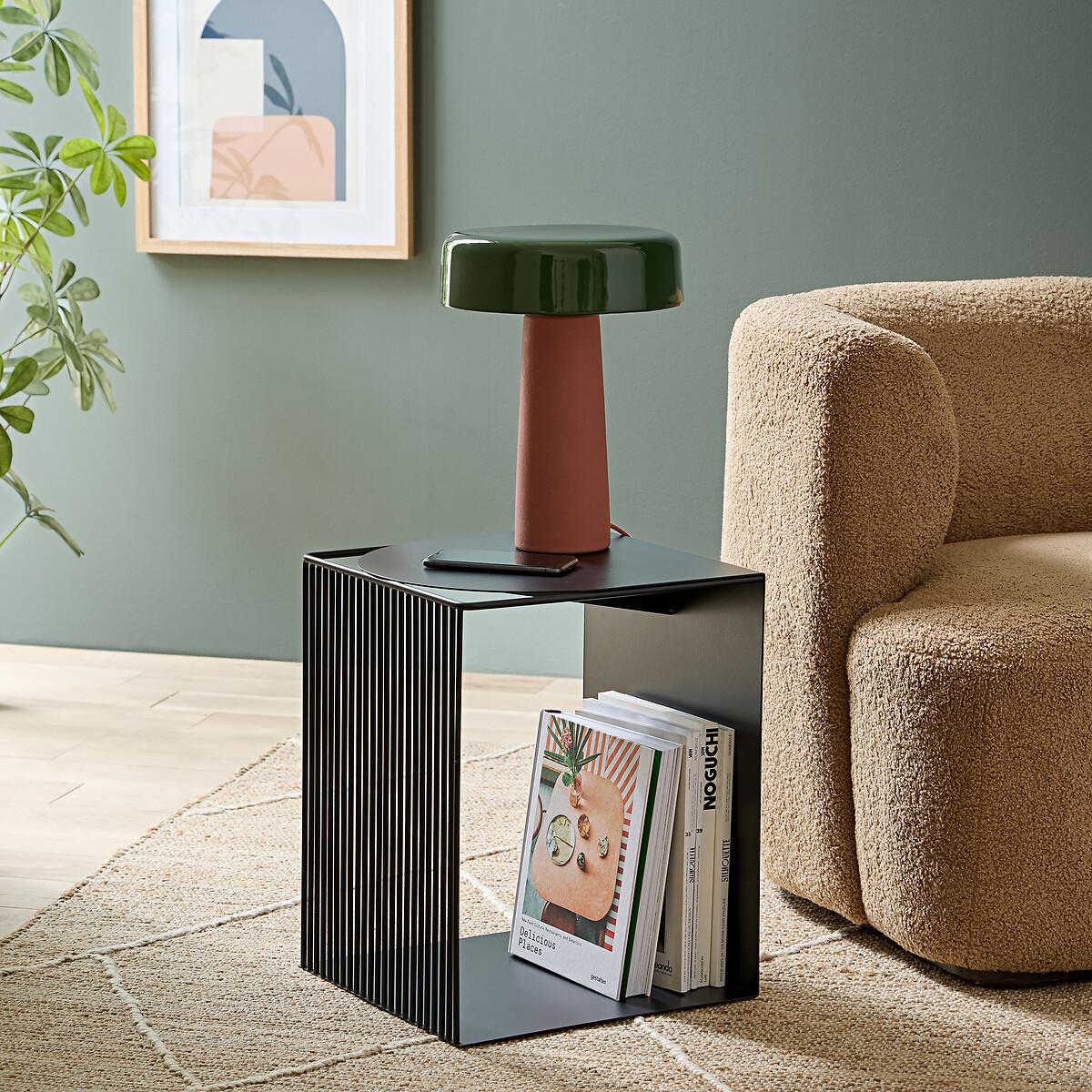 Minimalist and architecturally-inspired. The Salem metal end table combines curves and structural graphic lines. Ideal for showcasing a designer lamp, storing magazines (or sitting down for a meal in front of your favourite series).Designed by La Redoute Intérieurs. Product Details • Matt black lacquered steel with epoxy coating • Wire steel, diameter 6/8mm. Dimensions • Length: 35cm • Height: 45cm • Depth: 36cmDelivery:. Assembly required. Available for home delivery. Dimensions and weight of parcel1 parcel • L43 x H53.5 x D43.5cm. 10.8kg.