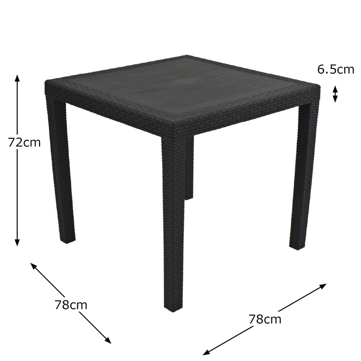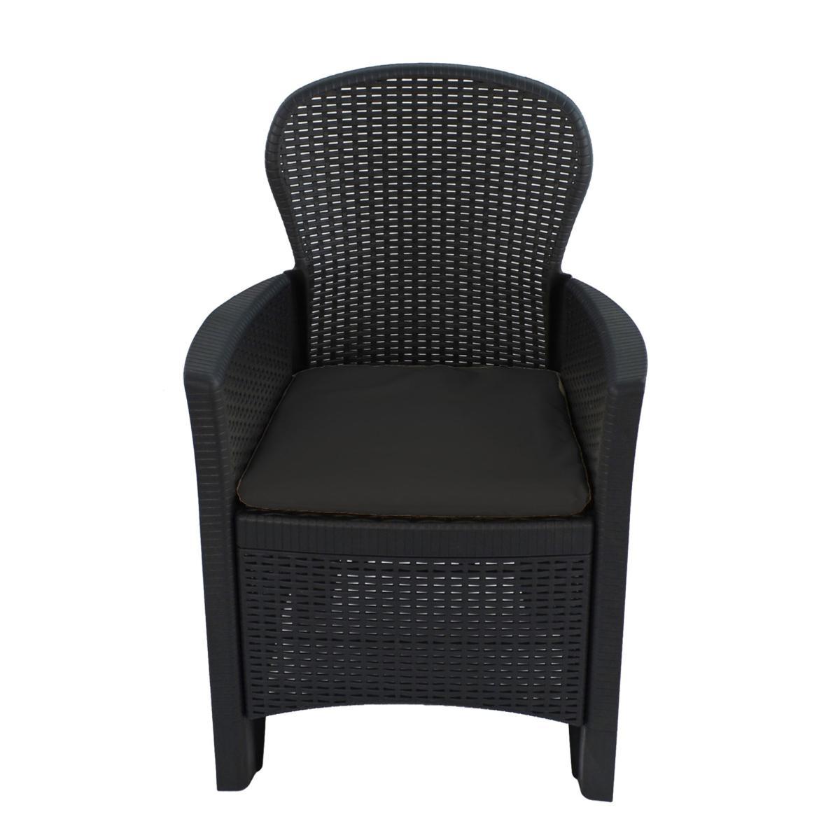 * Weatherproof* Low maintenance* 1 table, 4 chairs & 4 cushions Fashioned from weatherproof polypropylene, this garden furniture set is the ideal, low-maintenance addition to any garden décor. Including one table, four Sicily chairs, and four chair cushions for your comfort, the set is both attractive and practical.