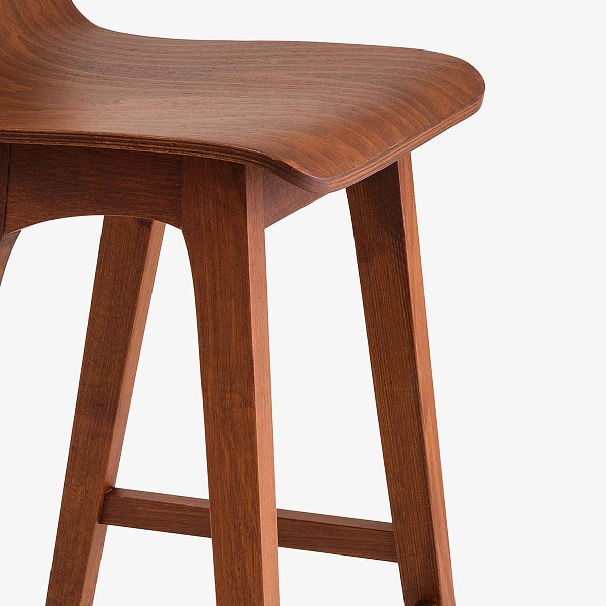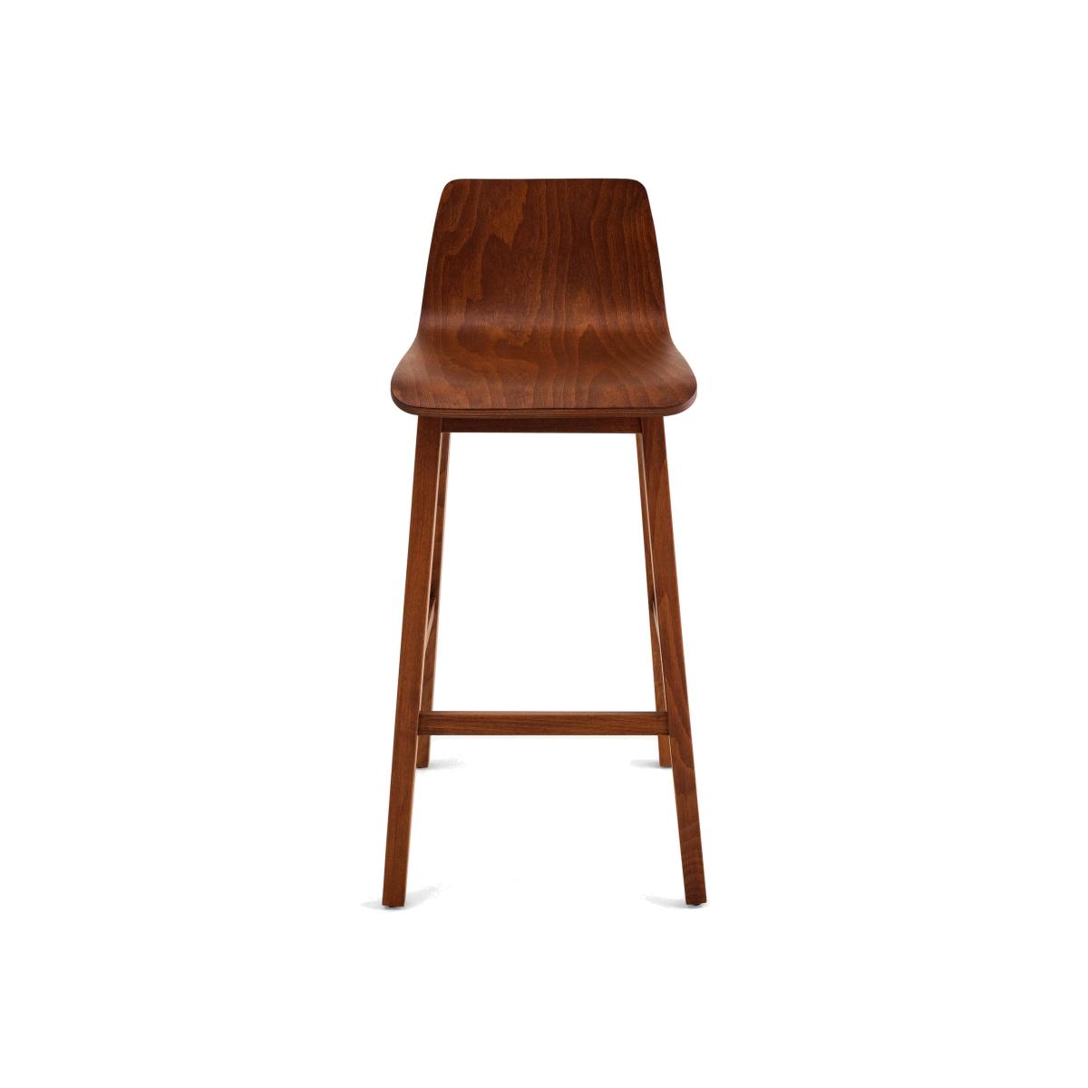 Meet our Salerno bar stool. It's part of our dining collection and will make your kitchen or dining room look and work better with ease. With its slim shape, Salerno is a stylish seating solution for smaller spaces. Made from a smooth, solid beech frame and a wooden chair in a walnut finish with a leg rest, it's functional without sacrificing style. For a coordinated look, pair multiple pieces for a cohesive look. Because our Salerno bar stool is handmade, minor imperfections or differences in shape, size, and colour may occur; this is part of the charm of a crafted product.
