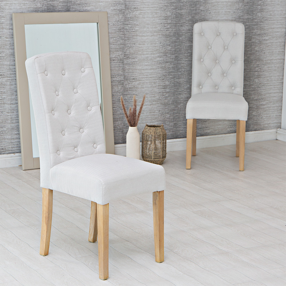 We like to think we've got all bases covered to ensure you can find the perfect Upholstered Dining Chair to match the table of your choosing. All of these chairs will match the vast majority of our light/medium oak and painted oak Dining Tables. Don't be afraid to mix and match different chairs around one table, in doing so you can create some really beautiful combinations.