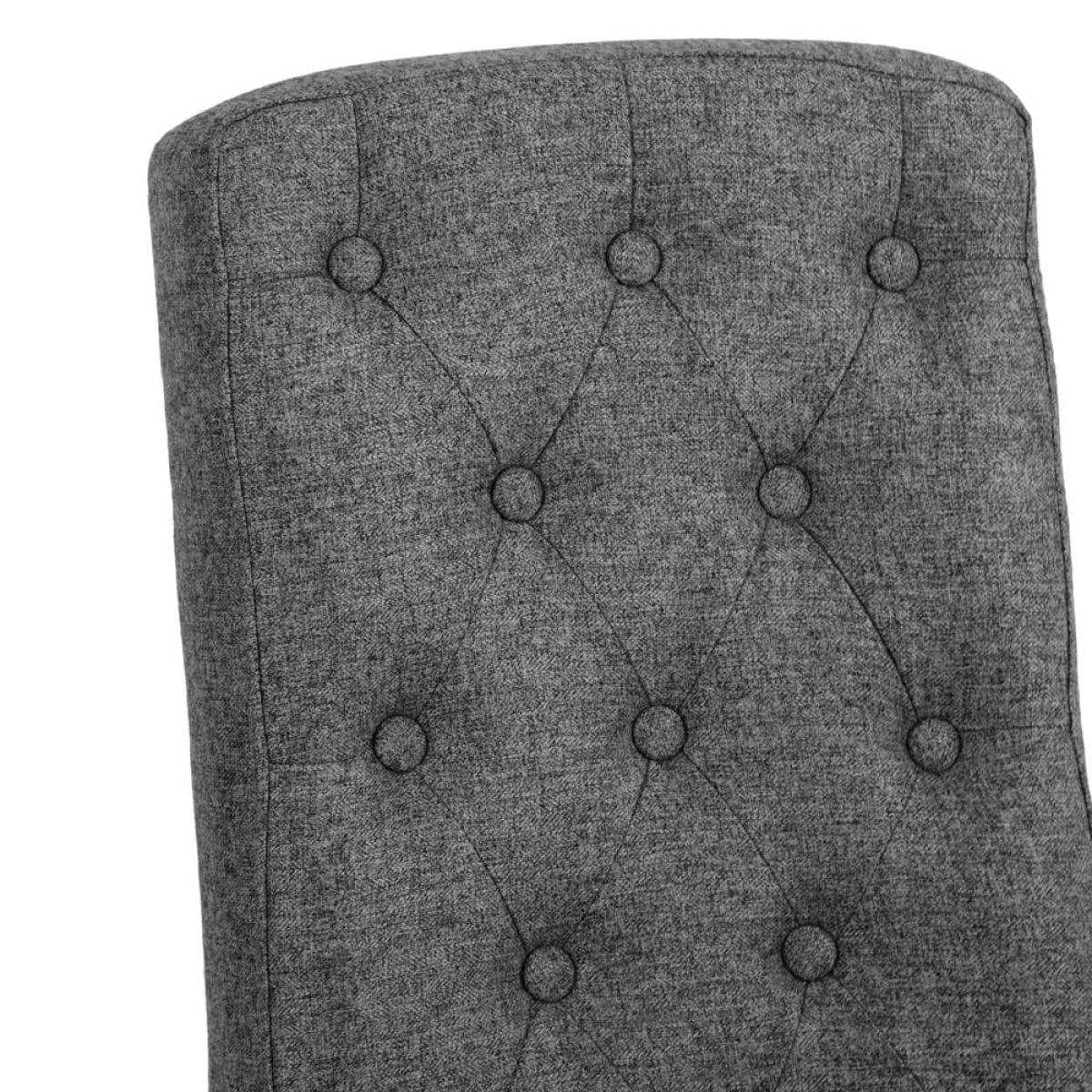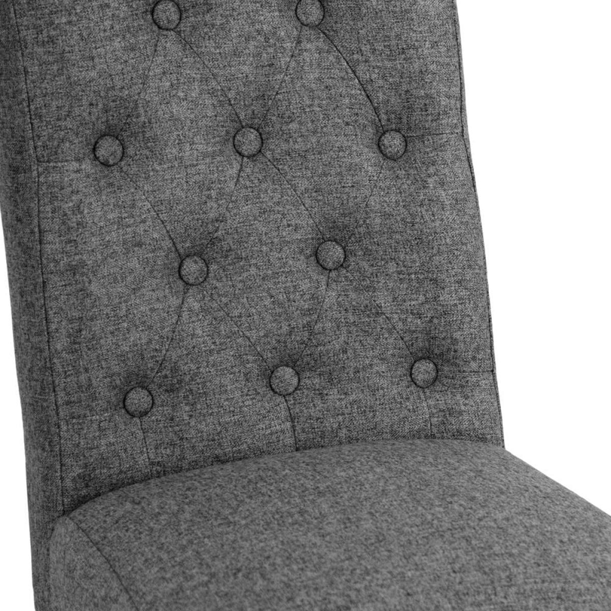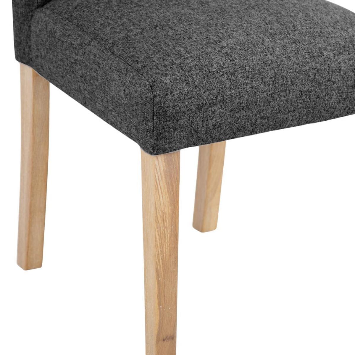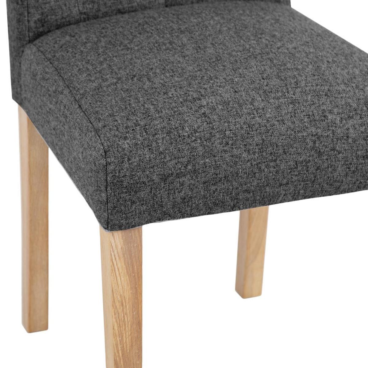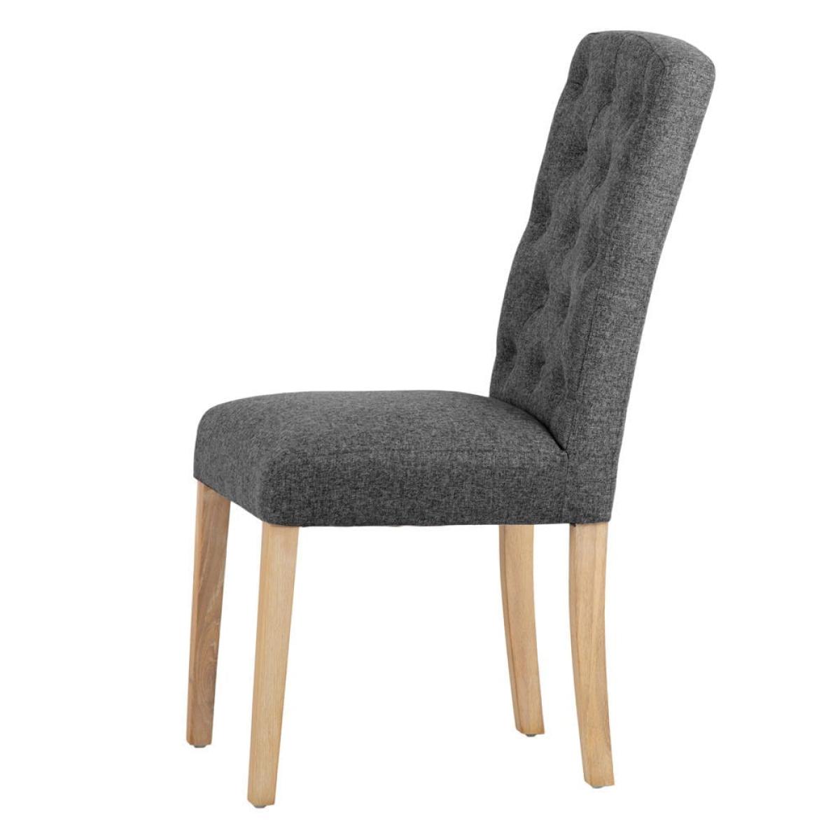 Choose our Salerno dark grey classic button-back dining chair and invite all the elegance of its namesake Italian city into your home. This conversation starter of a chair is upholstered in a high-quality fabric that’s just as suitable for family mealtimes as it is for special celebrations. The charcoal grey hue brings a touch of sophistication to your dining space, while our pale solid oak legs make a striking contrast. This chair is generously padded, and the tall, curved seat back gives you plenty of support. Diamond-shaped studding keeps you extra comfortable and makes this statement piece even more easy on the eye.