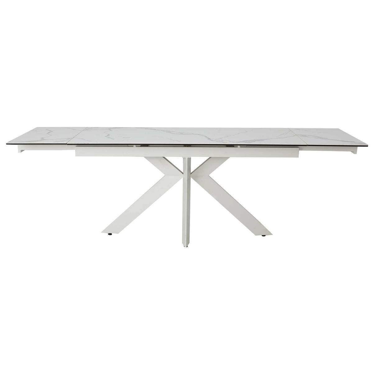 This dining table is a fantastic choice for modern interiors, offering a sleek, minimalist look with its matte Statuario finish and white base. I love how versatile it is - it easily works in both contemporary and Scandinavian-inspired spaces, adding a sense of lightness while remaining practical. When styling, consider pairing it with streamlined chairs in natural wood or subtle colour pops to keep the look fresh and inviting. The extendable feature makes it perfect for both everyday family dinners and larger gatherings, while the clean surface lends itself well to minimal accessories or a simple centrepiece. Overall, this table combines functionality with a crisp aesthetic, making it a stylish focal point in any dining room.